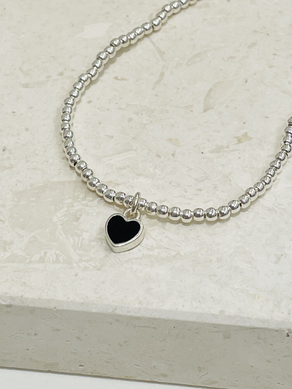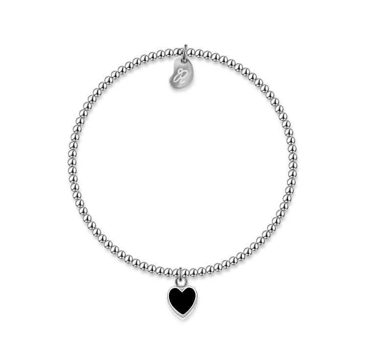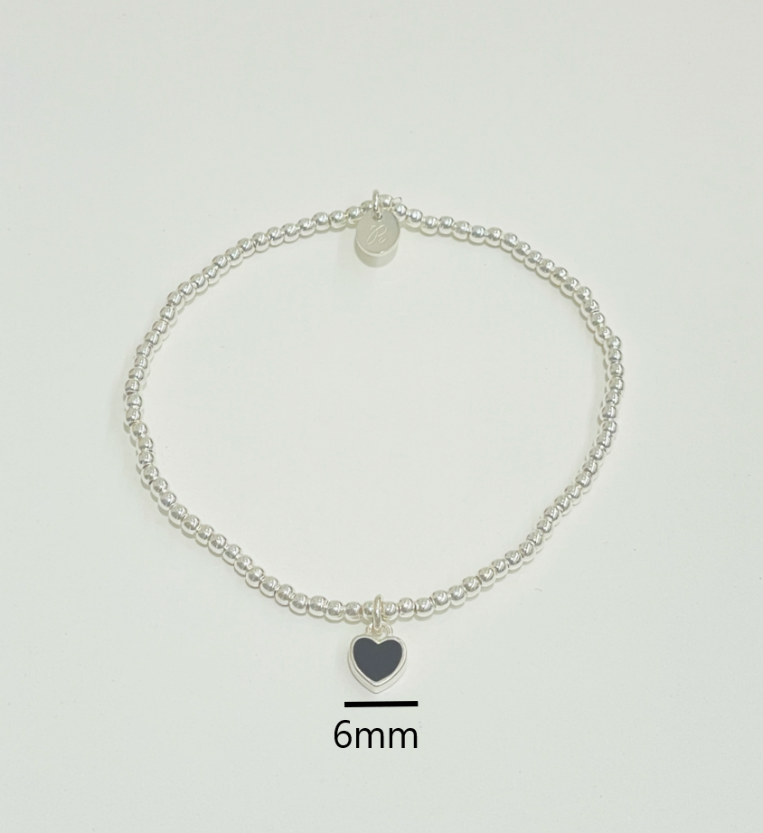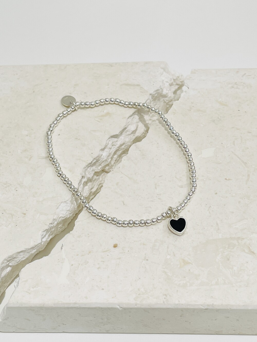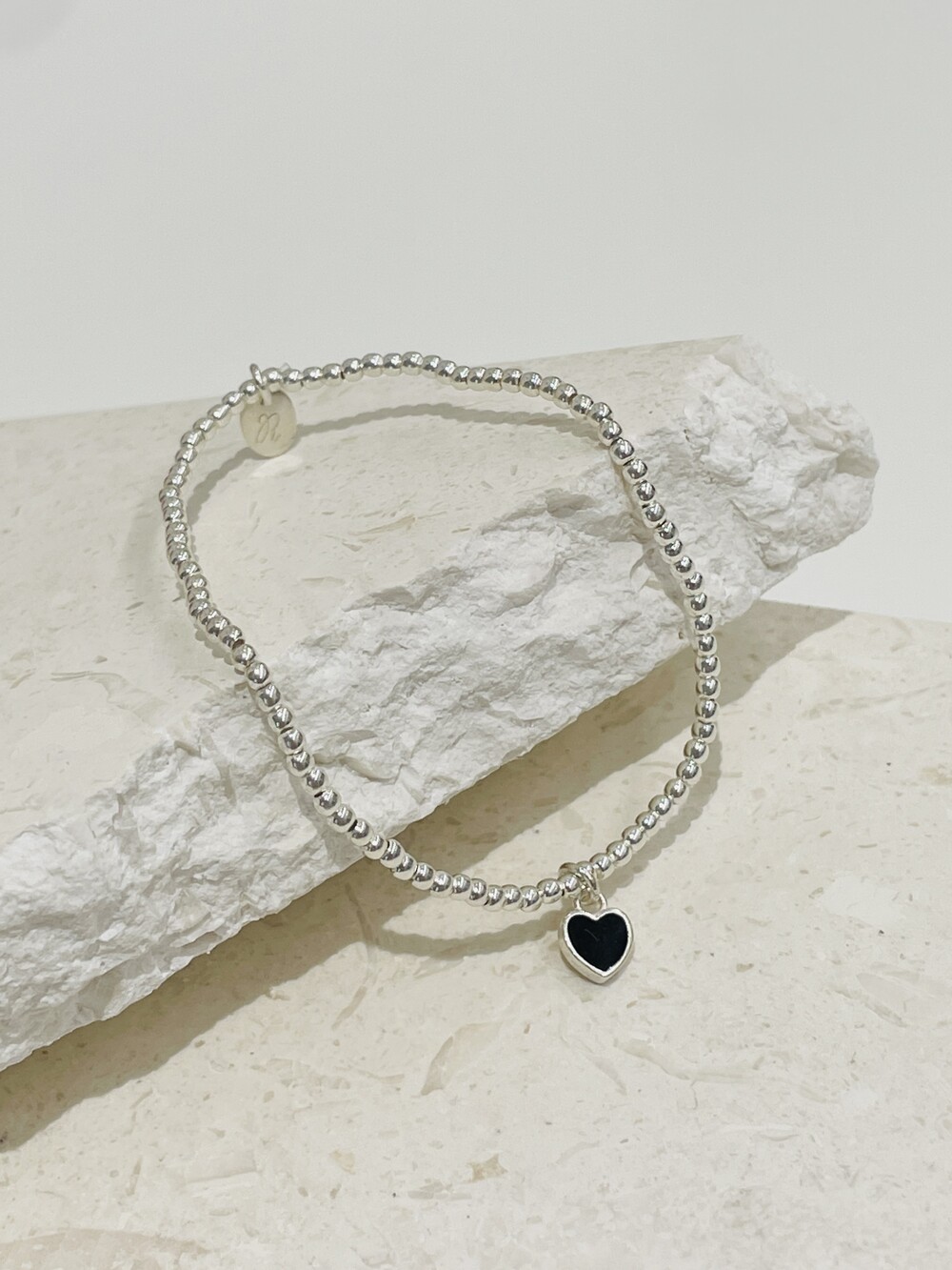 블랙 하트 펜던트와 실버볼이 조화로운 사랑스러운 포인트 팔찌