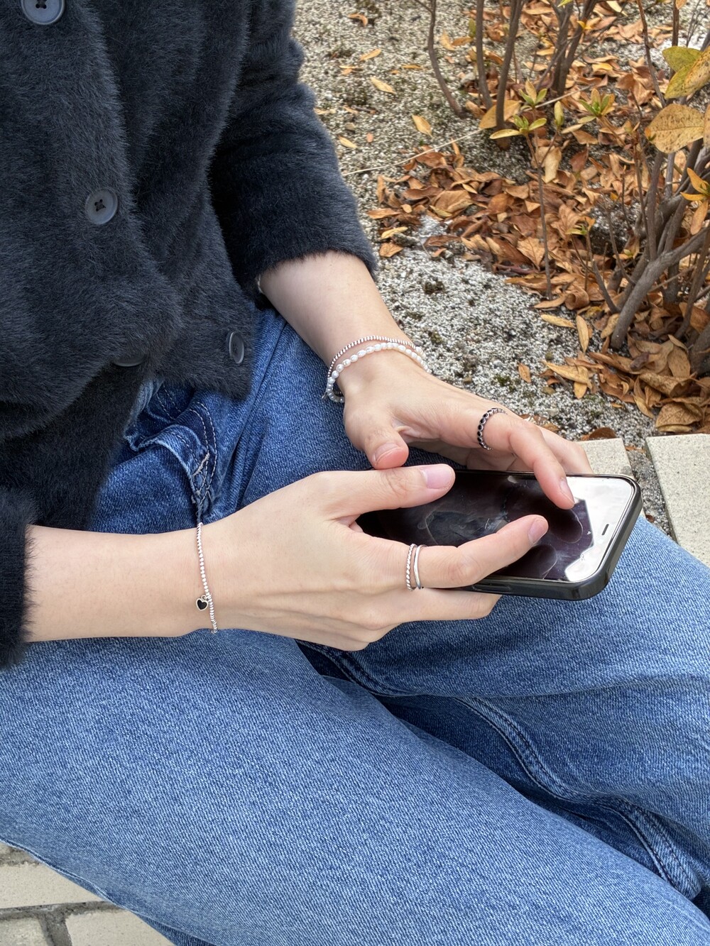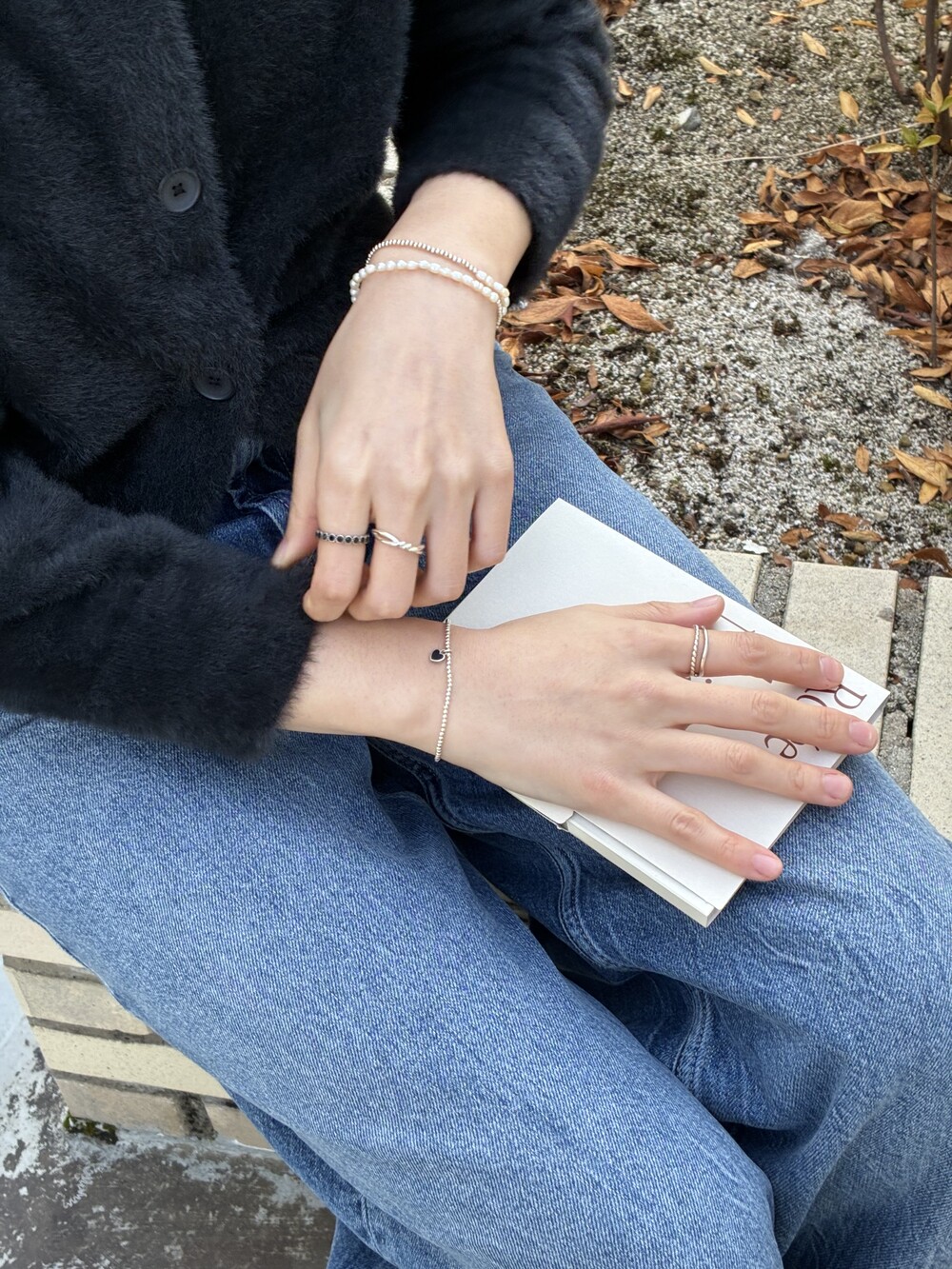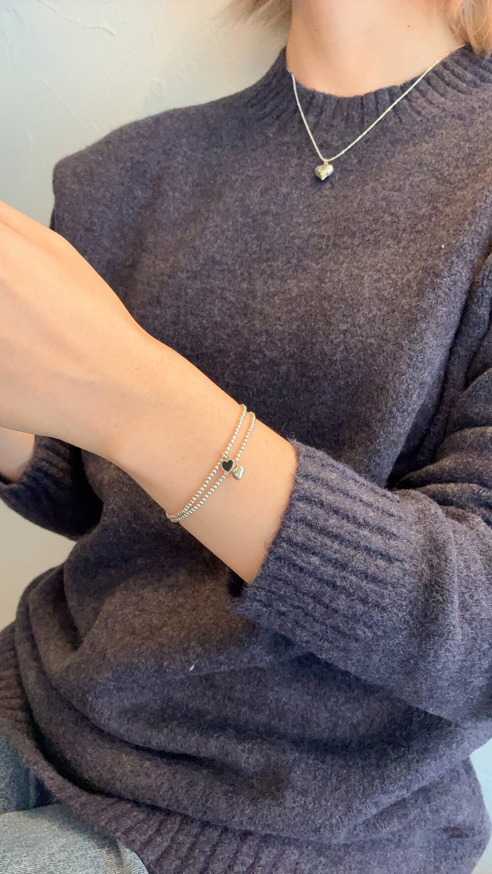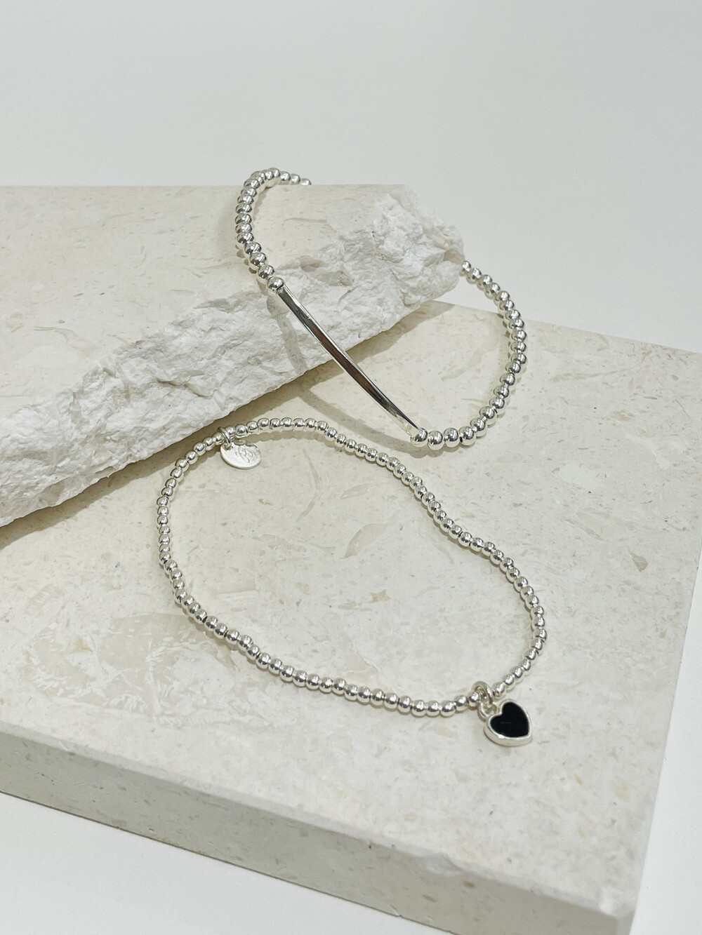 블랙 하트 펜던트와 실버볼이 조화로운 사랑스러운 포인트 팔찌