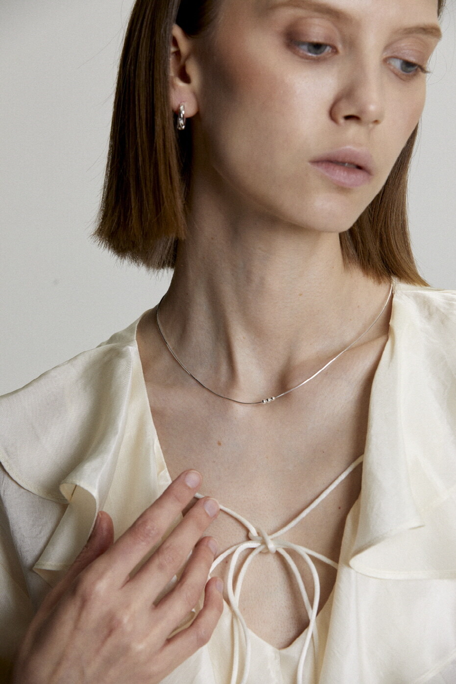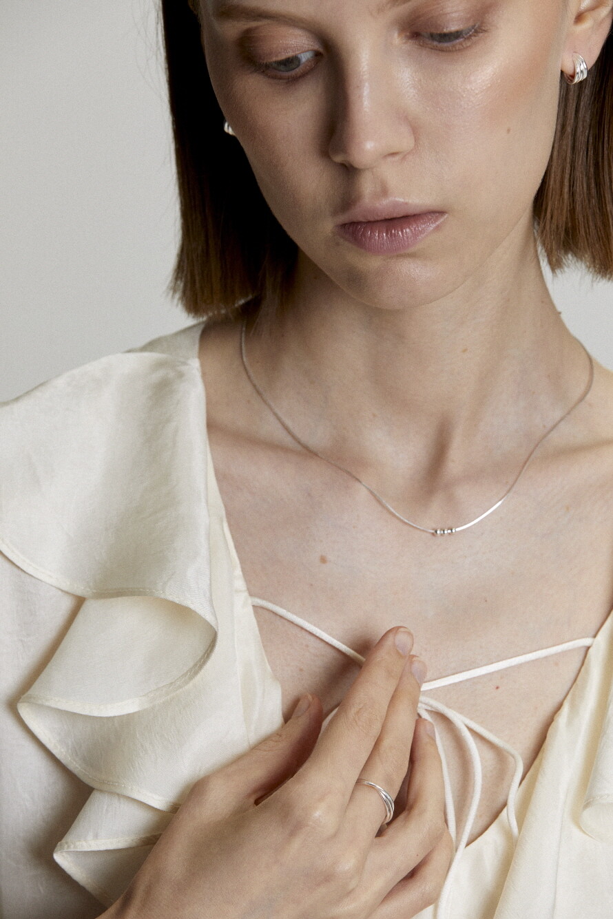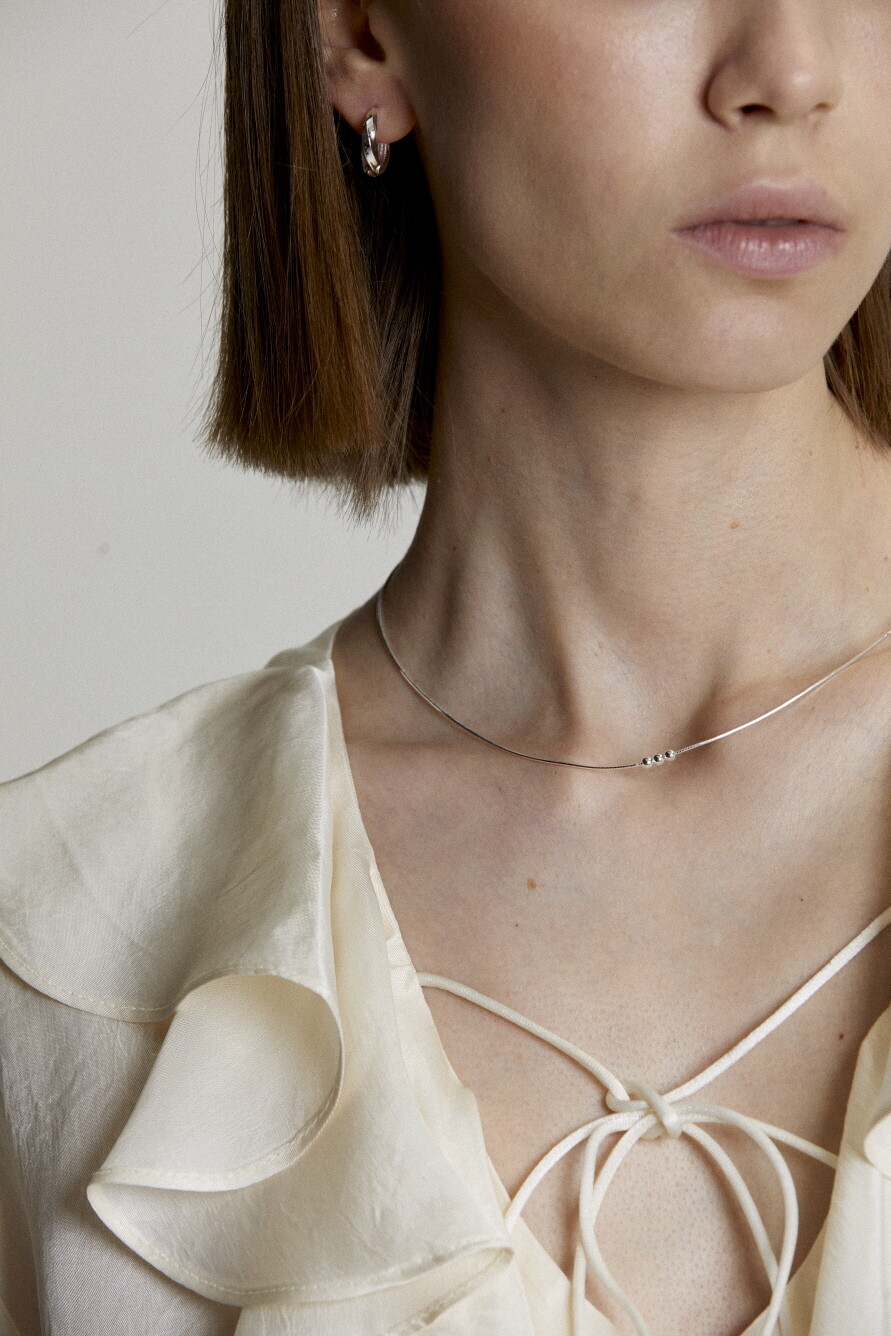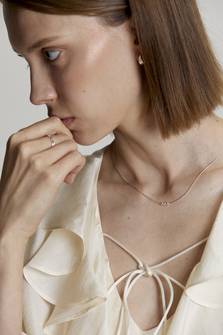 [925 Silver] 쓰리볼 뱀줄 목걸이