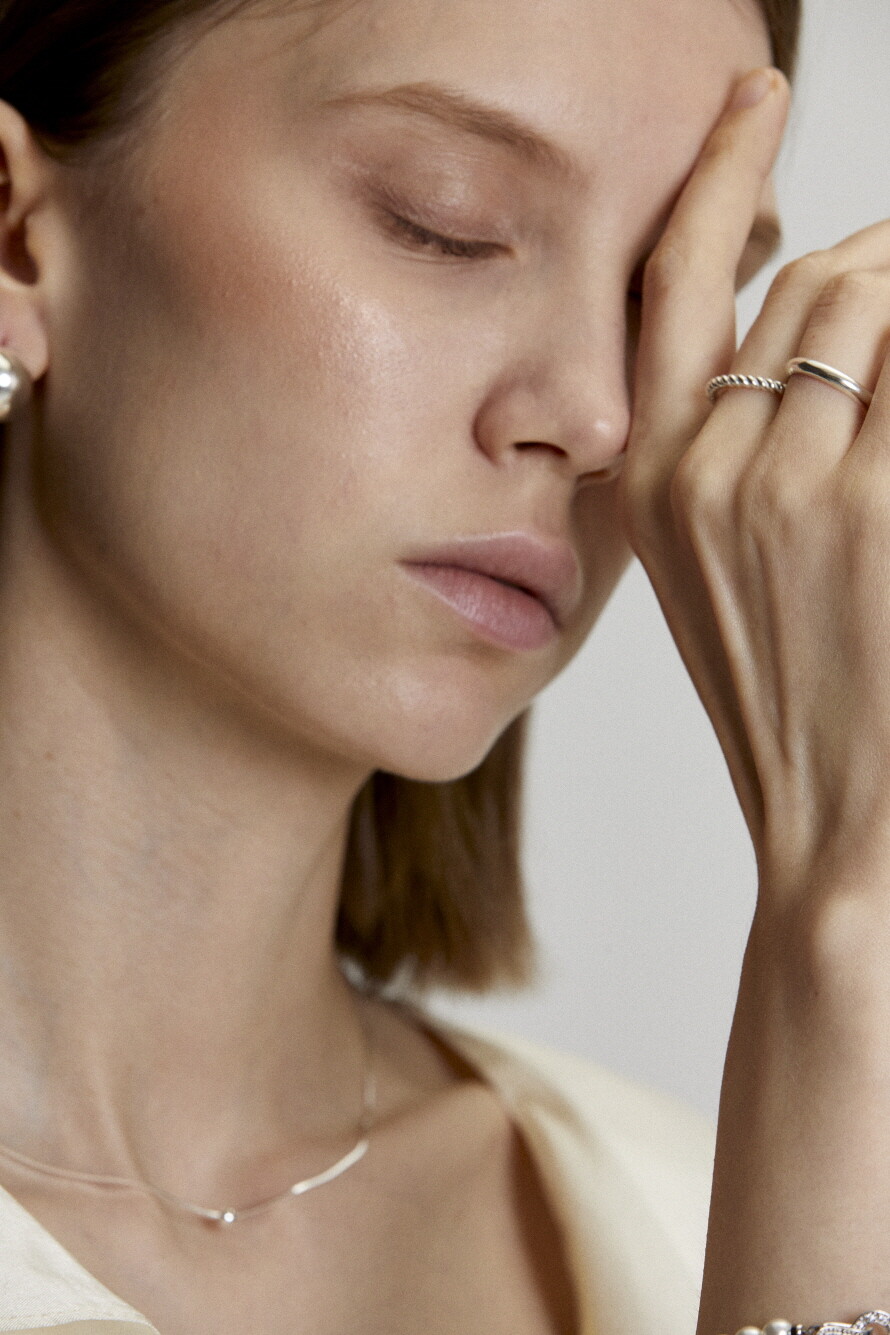 - size : 39cm(잠금 포함)/뱀줄 체인 두께 1mm/볼 사이즈 0.3cm