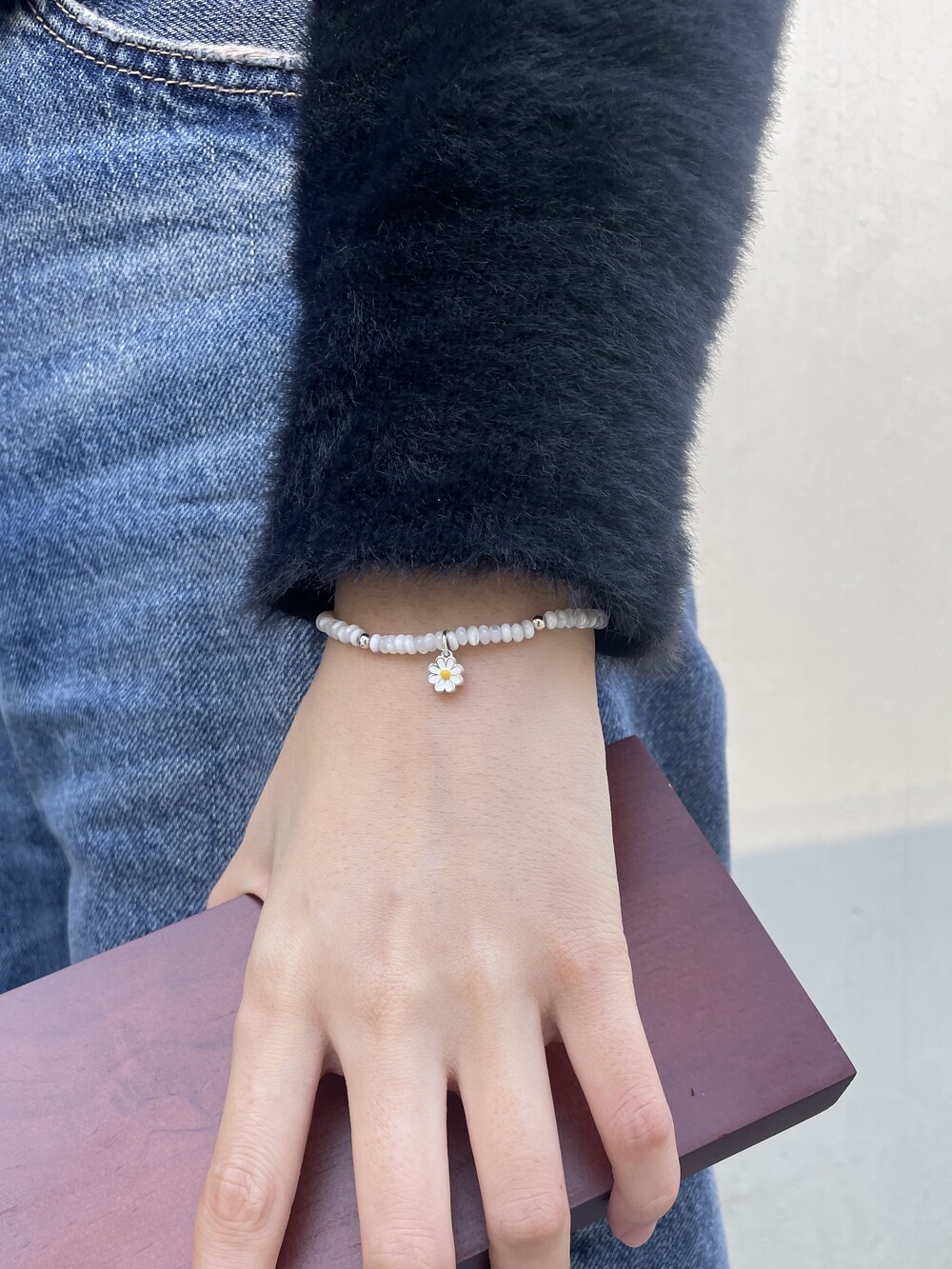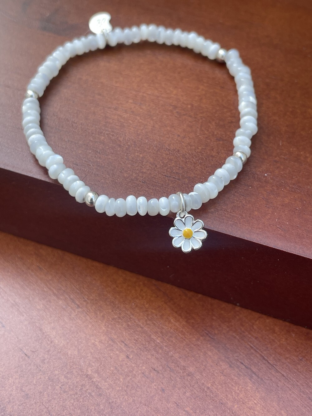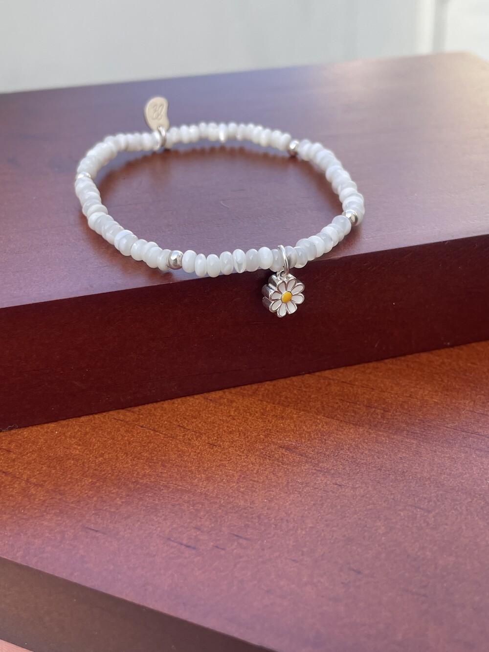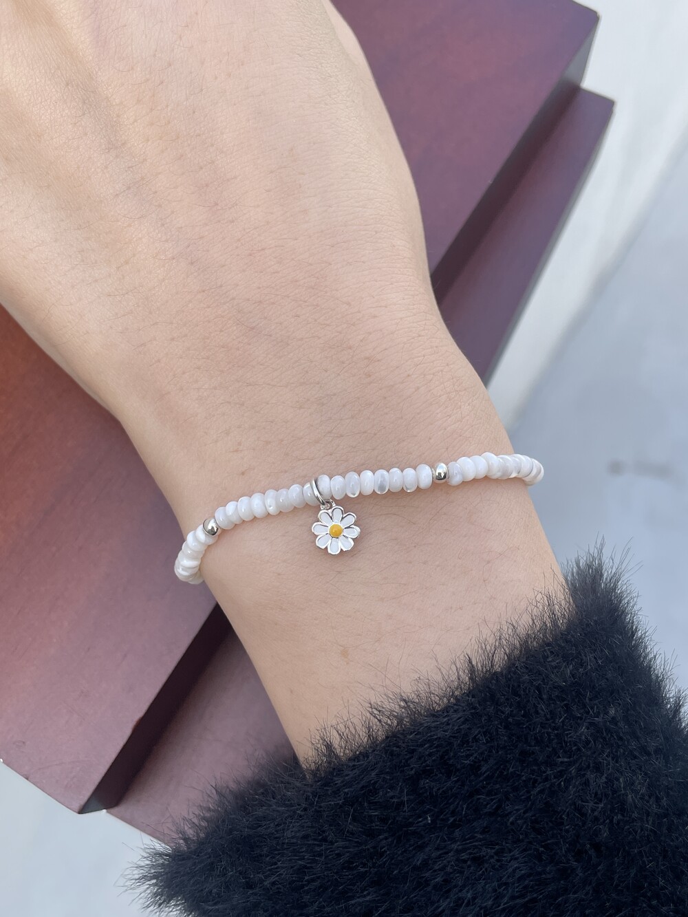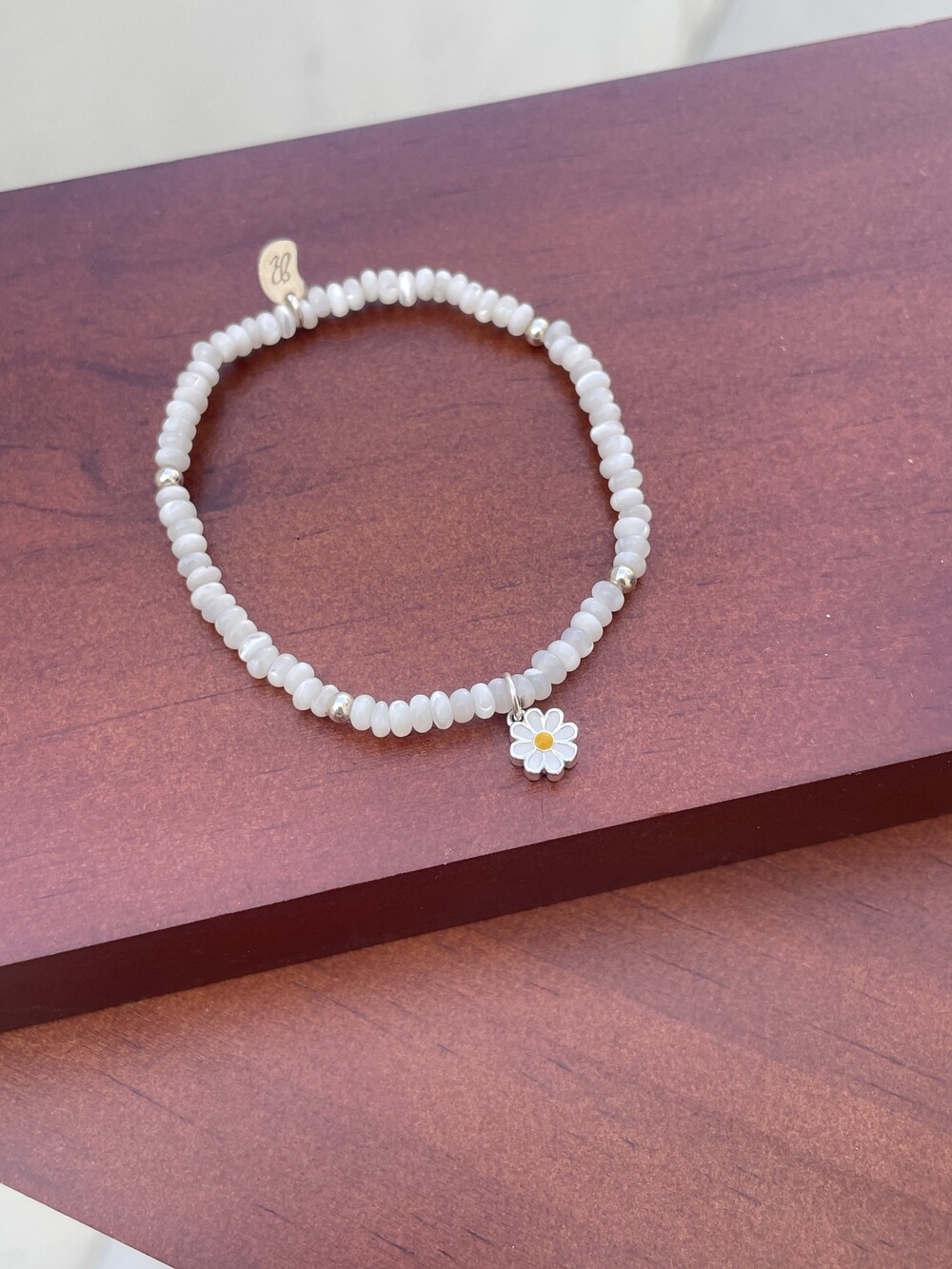 러블리한 데이지 화이트 자개 우레탄 팔찌