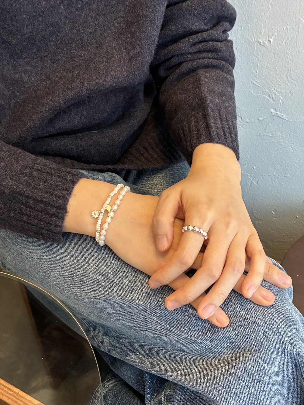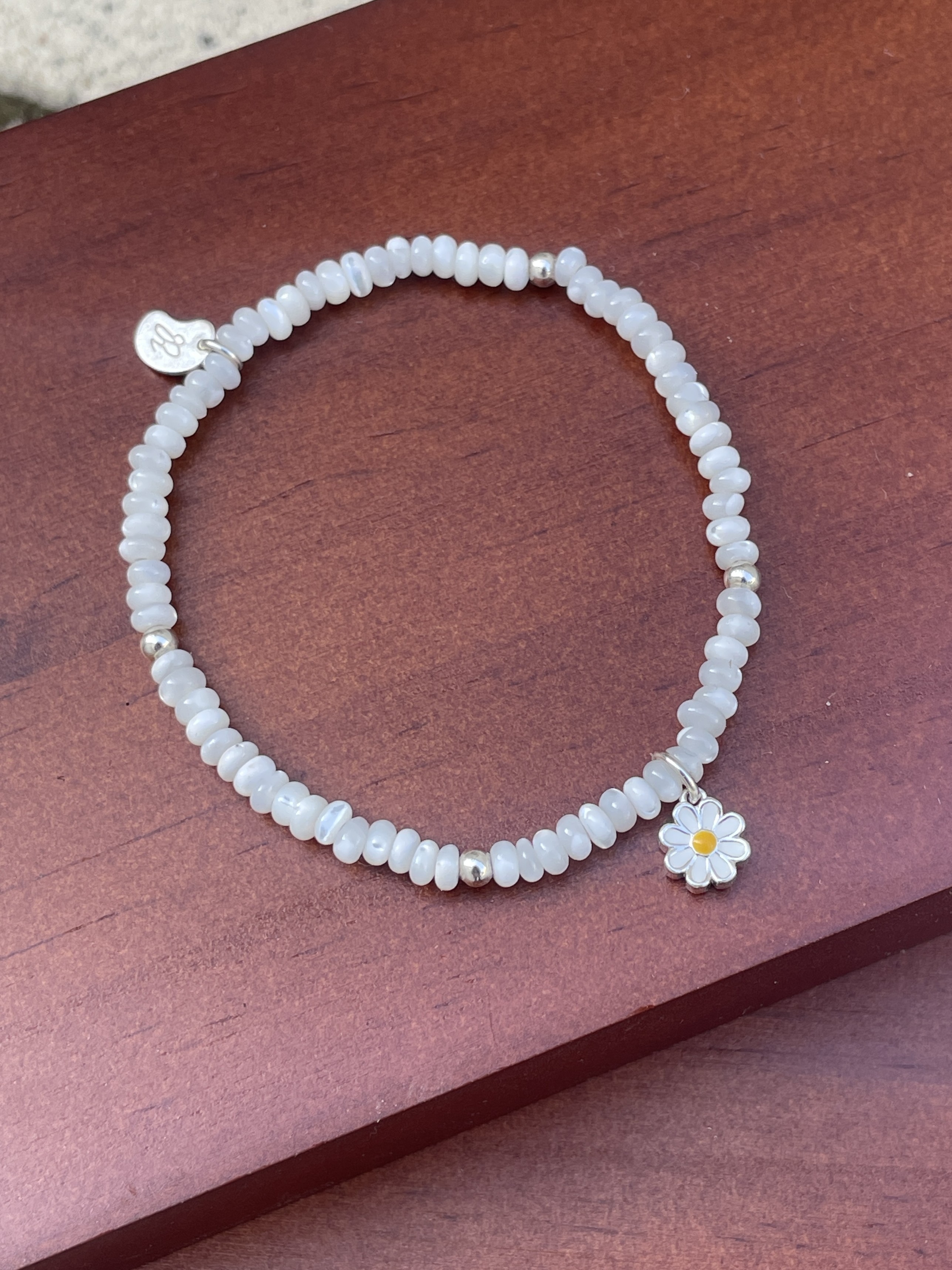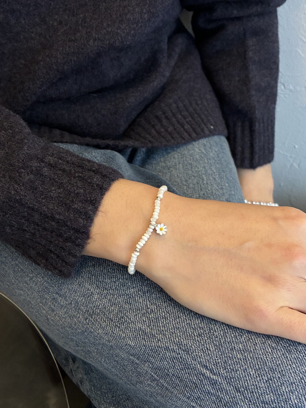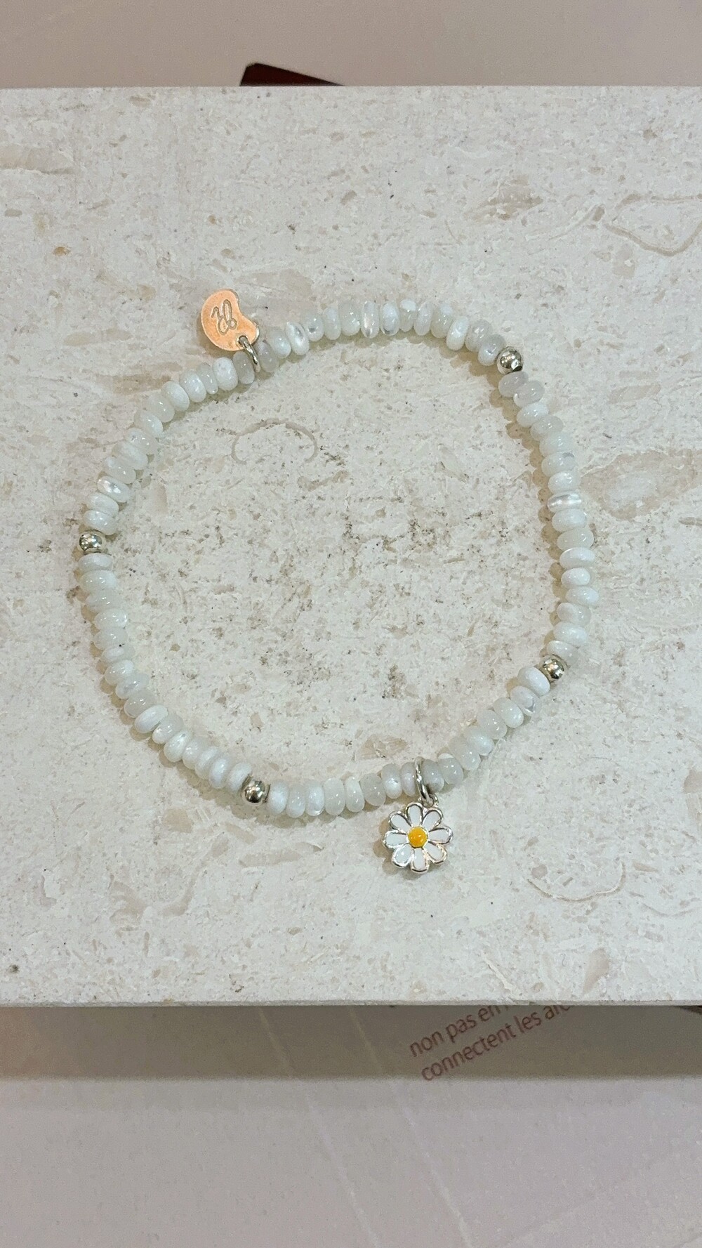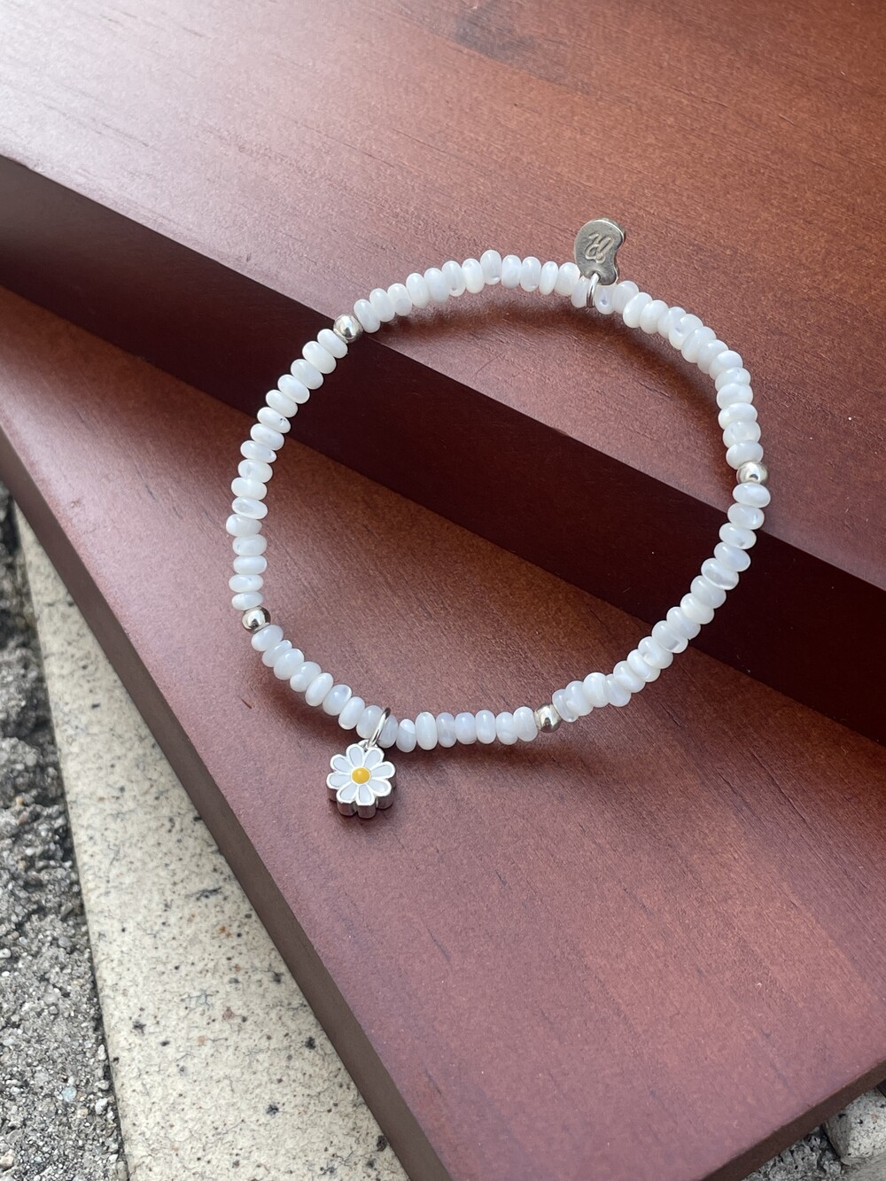 러블리한 데이지 화이트 자개 우레탄 팔찌