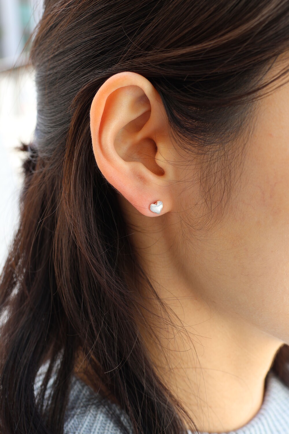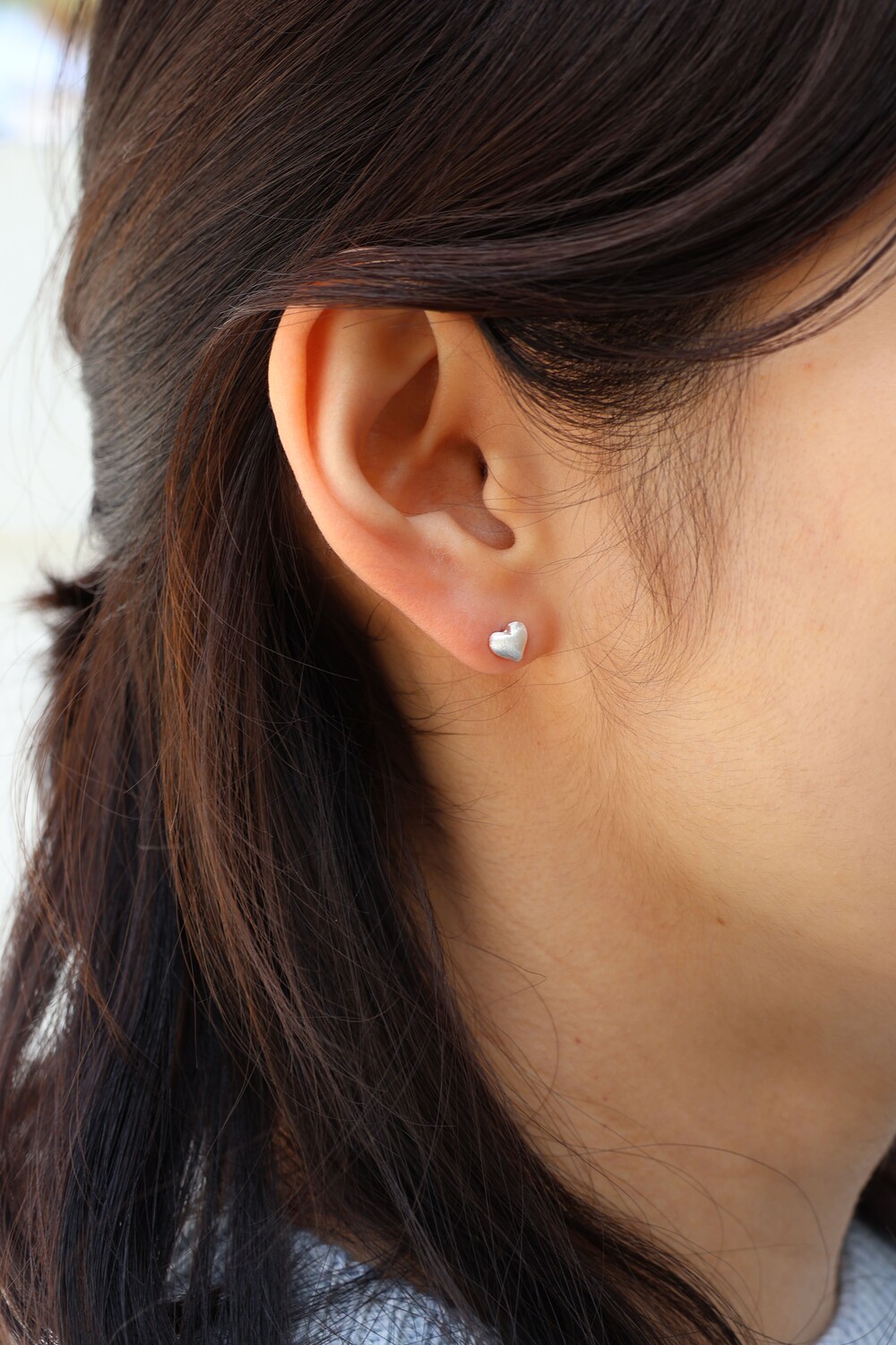 매트한 텍스쳐가 심플한 디자인의 무광 하트 귀걸이