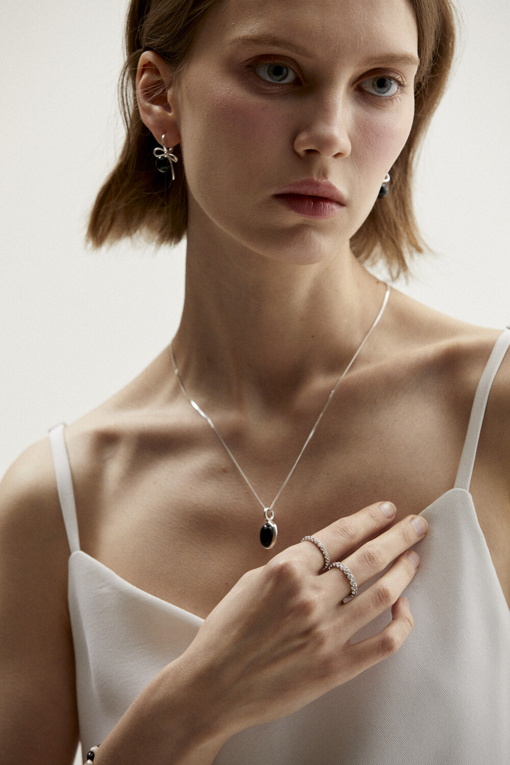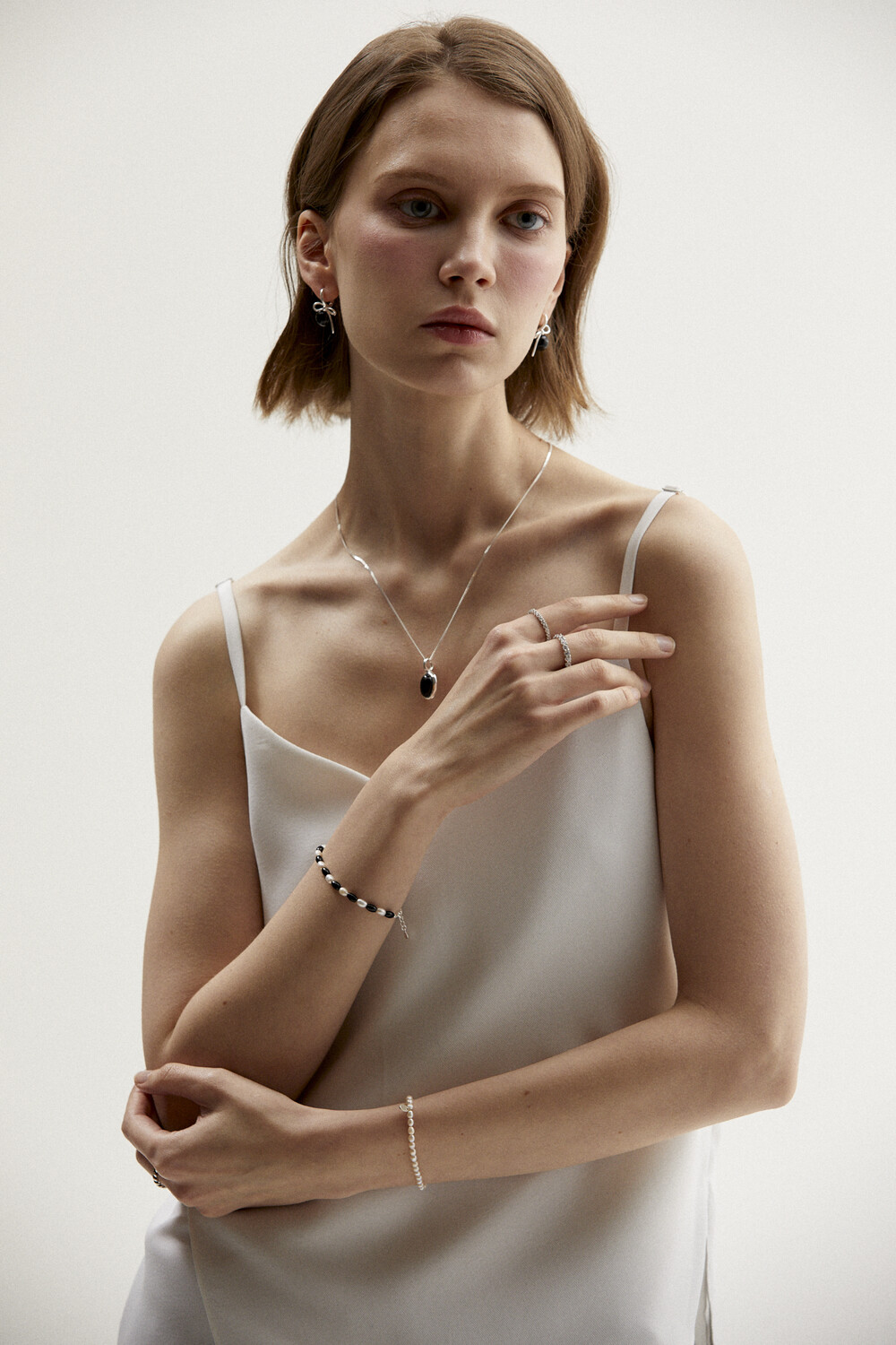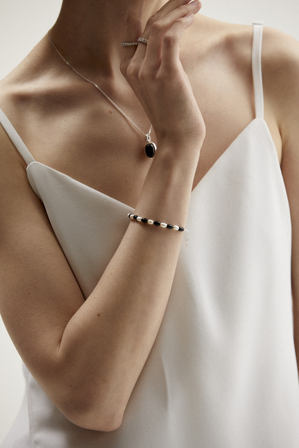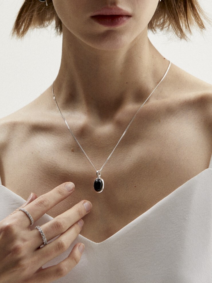 [925 Silver] 오닉스+문스톤 롱 목걸이