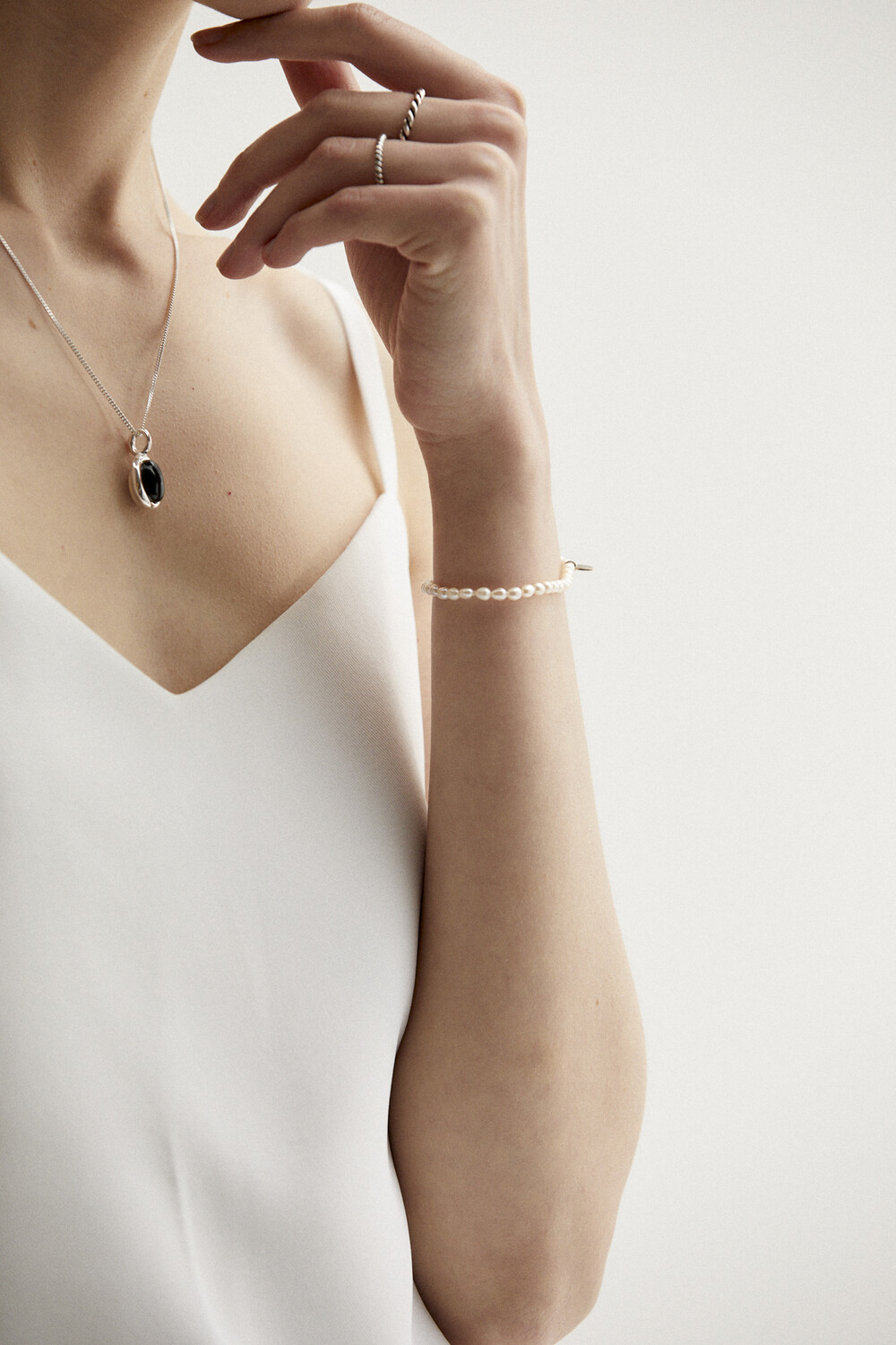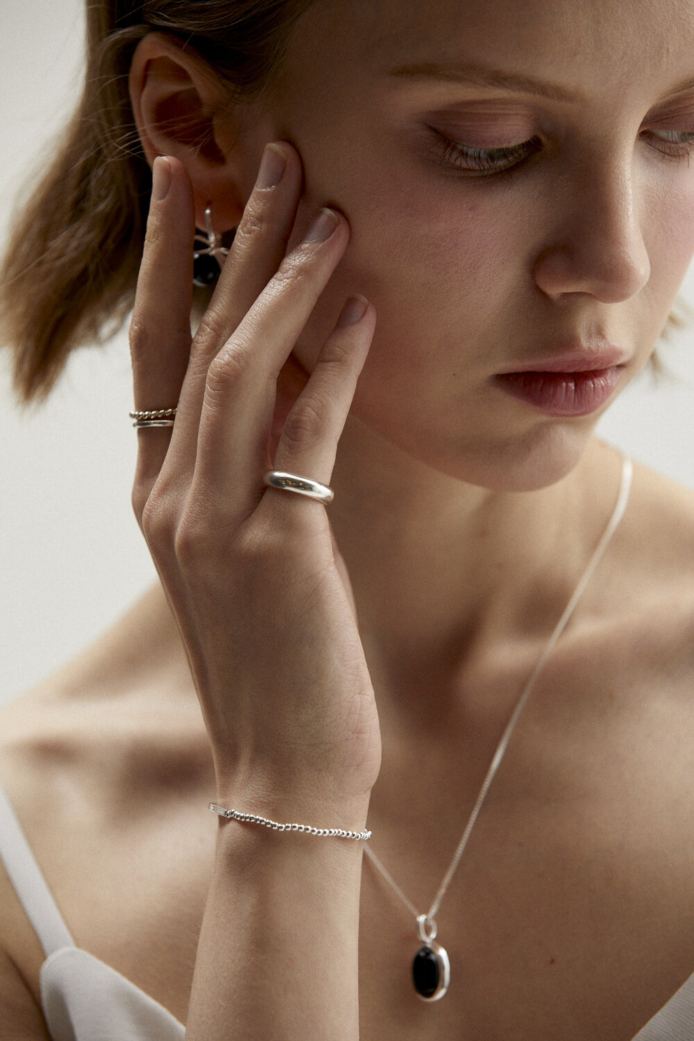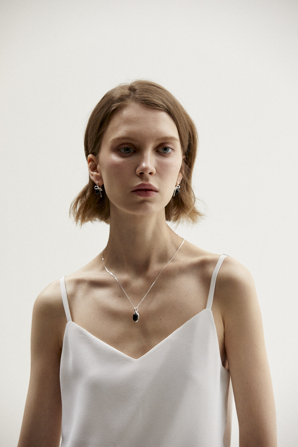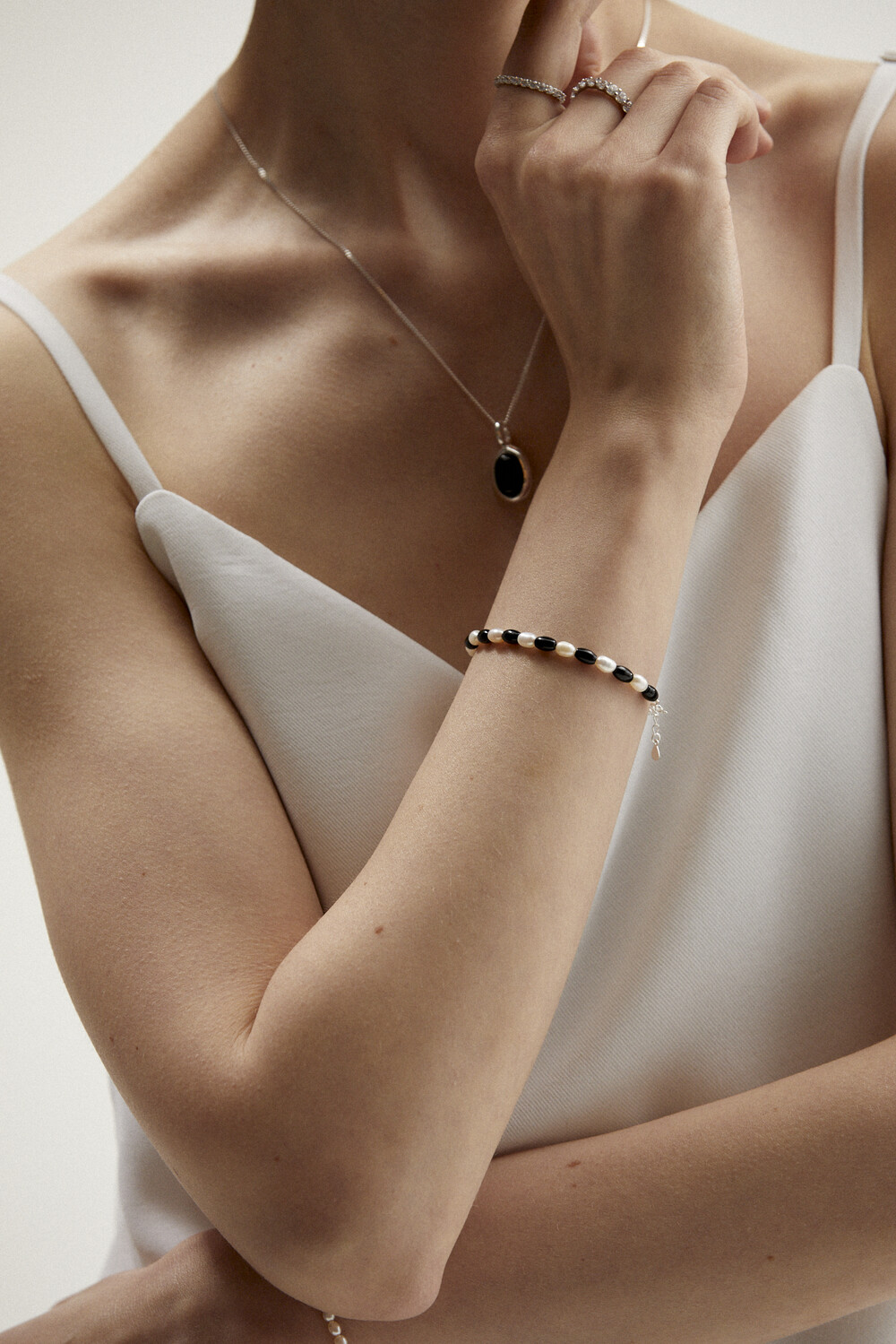 [925 Silver] 오닉스+문스톤 롱 목걸이