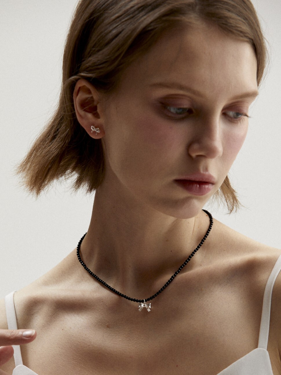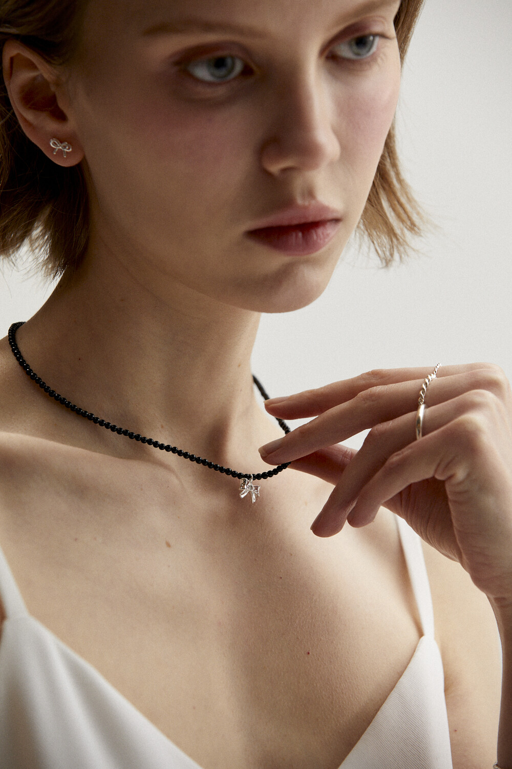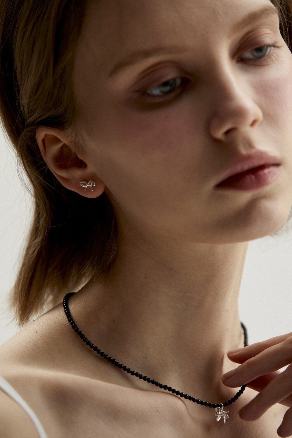 [925 Silver] 오닉스 볼+리본 펜던트 목걸이