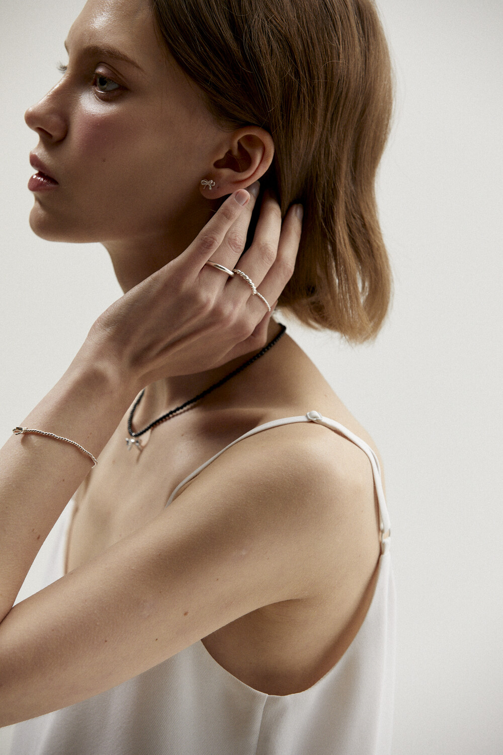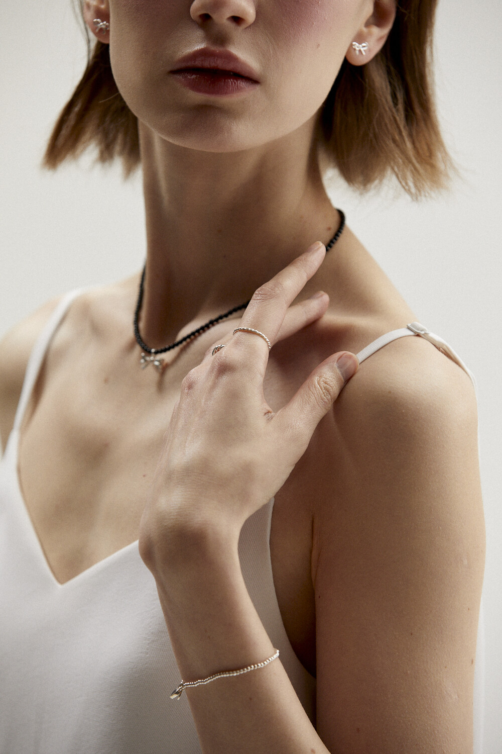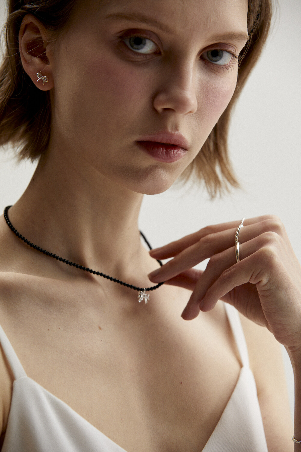 [925 Silver] 오닉스 볼+리본 펜던트 목걸이