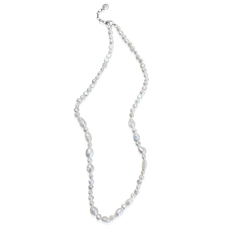 다양한 크기의 담수 진주가 레이어드되어 입체적이고 풍성한 매력을 선사하는 목걸이