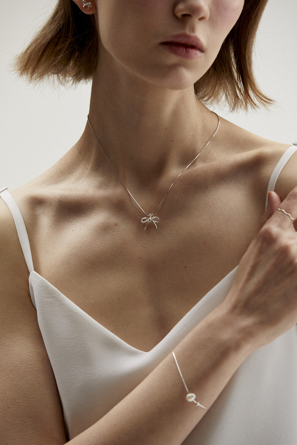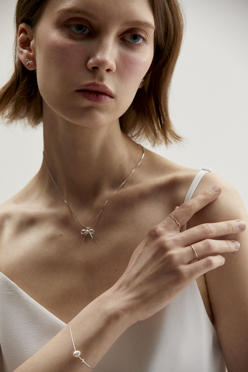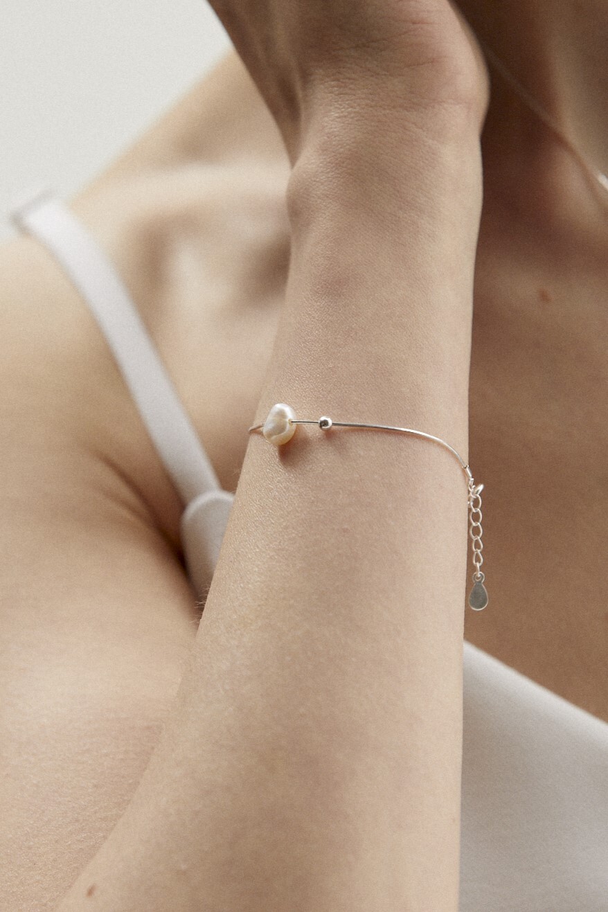 [925silver] 담수 진주 포인트 + 뱀줄 팔찌