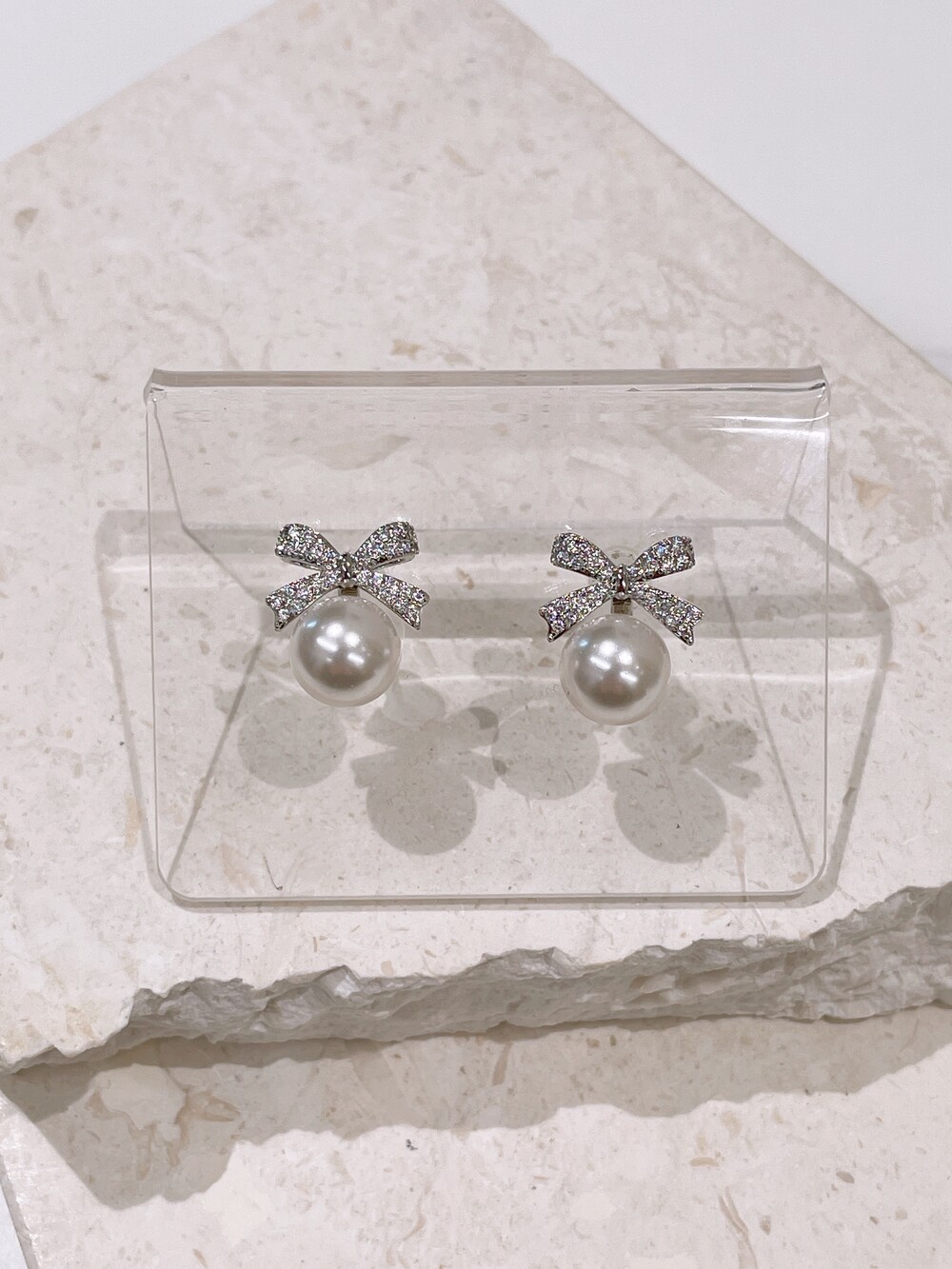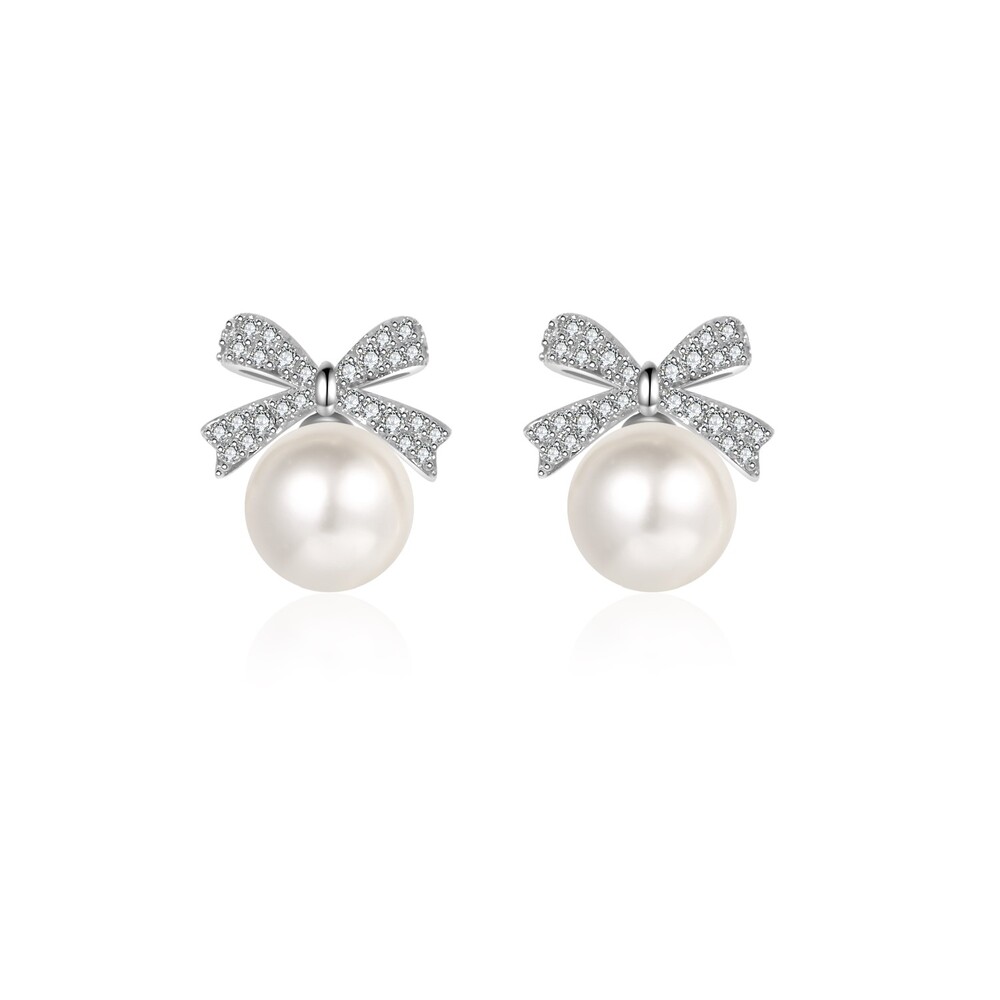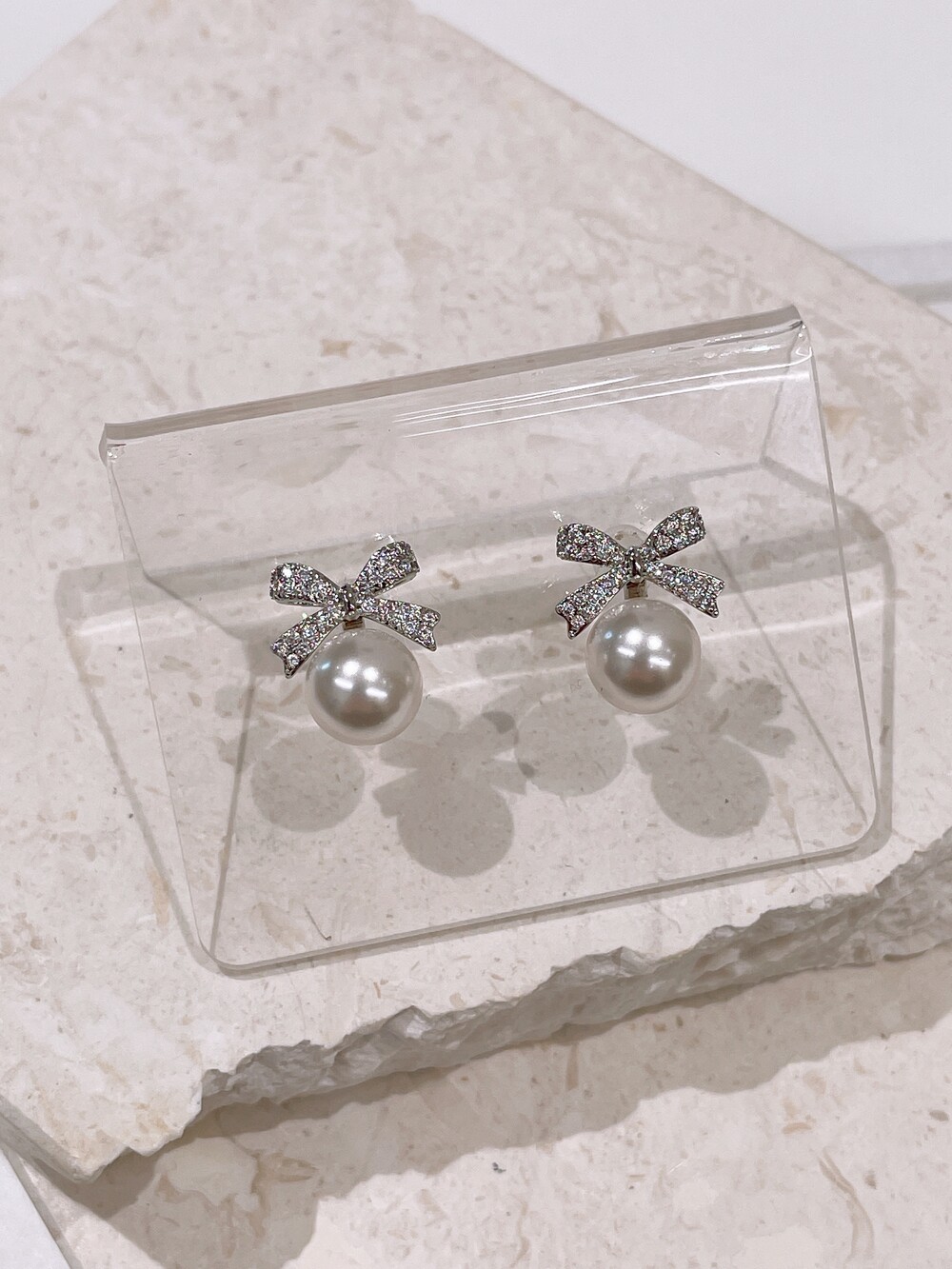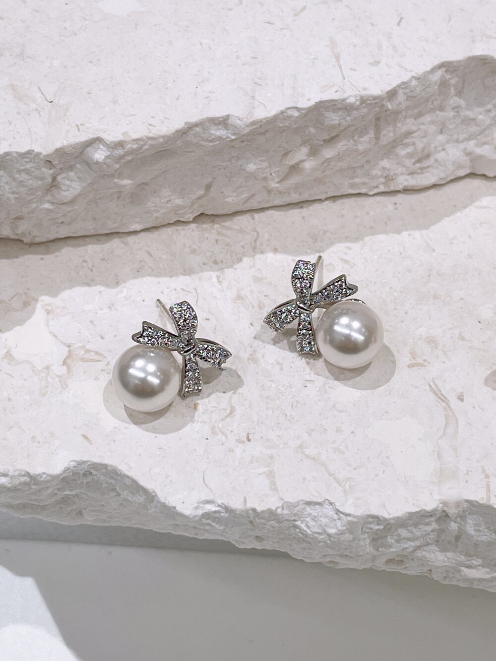 우아한 진주와 반짝이는 큐빅 리본의 조화로