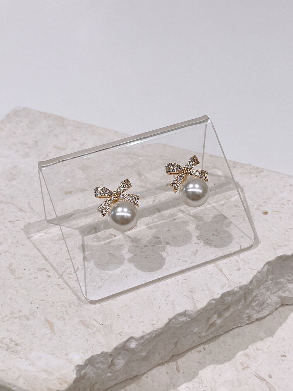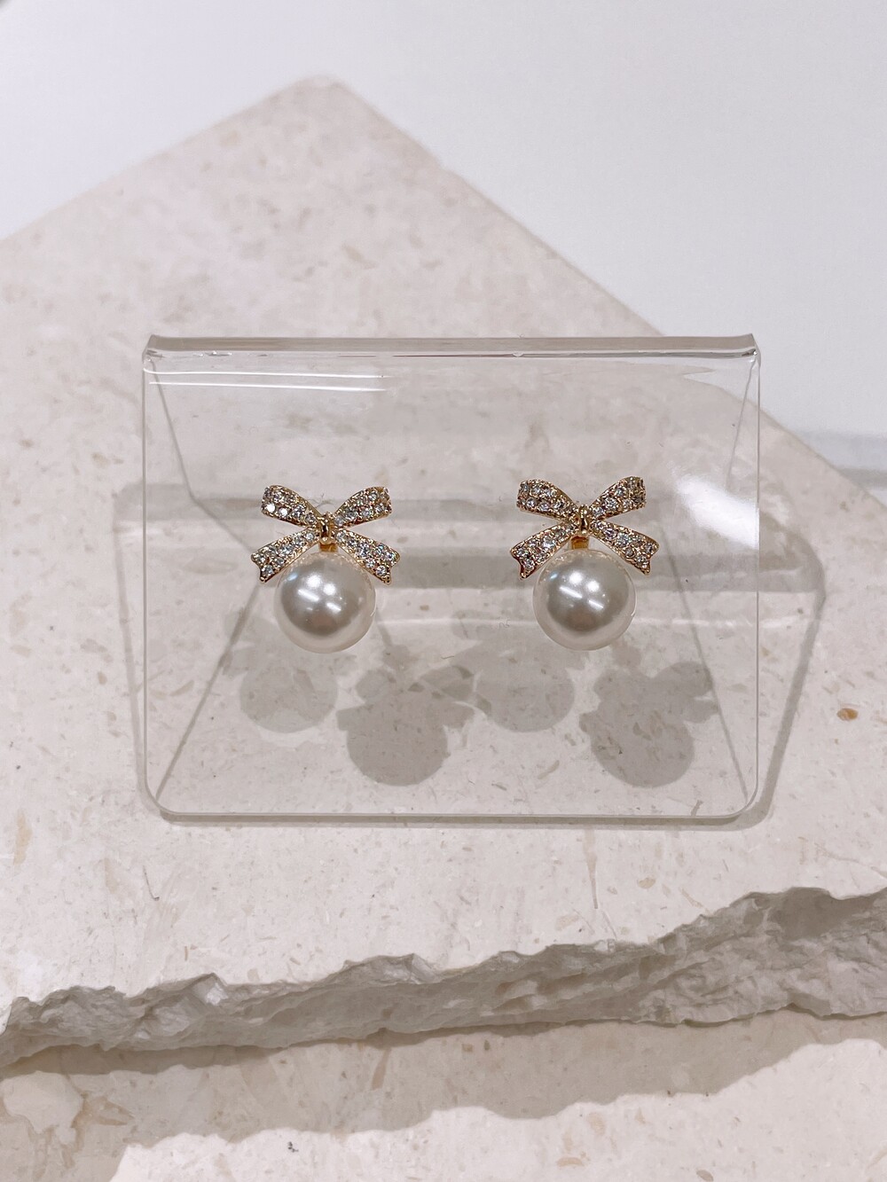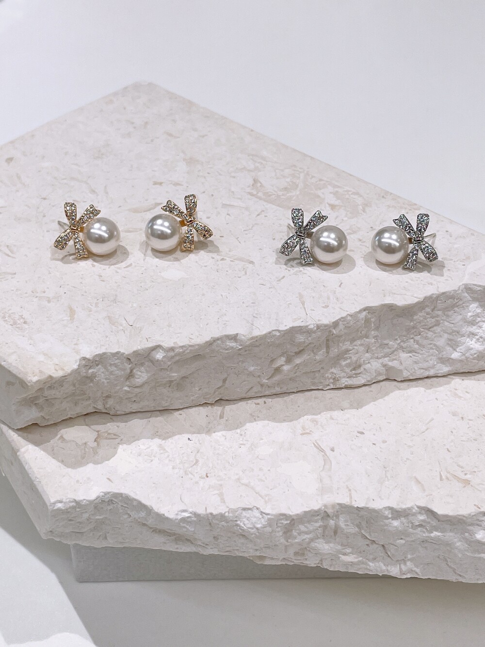 우아한 진주와 반짝이는 큐빅 리본의 조화로
