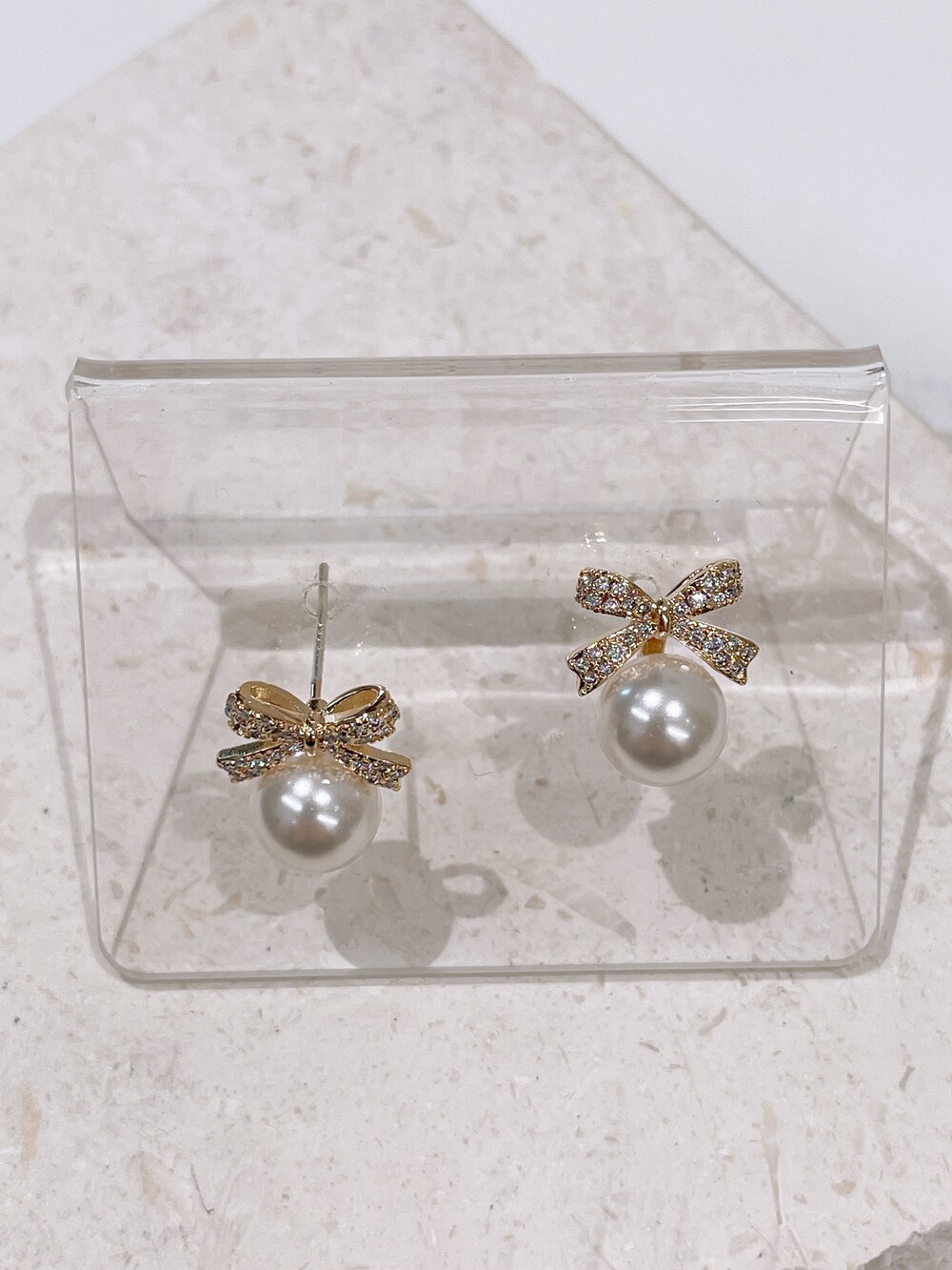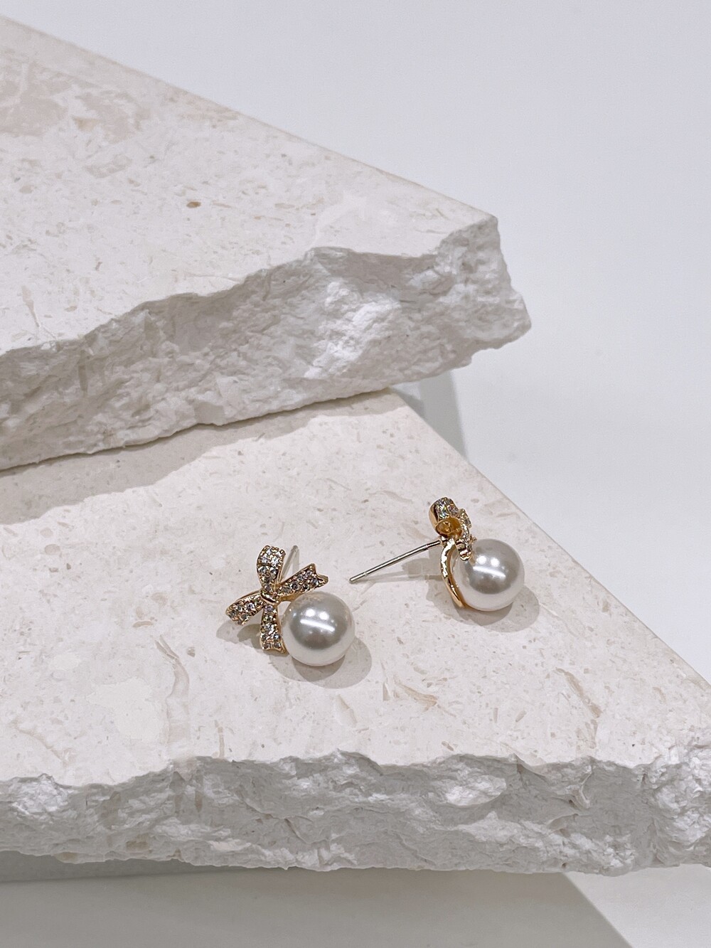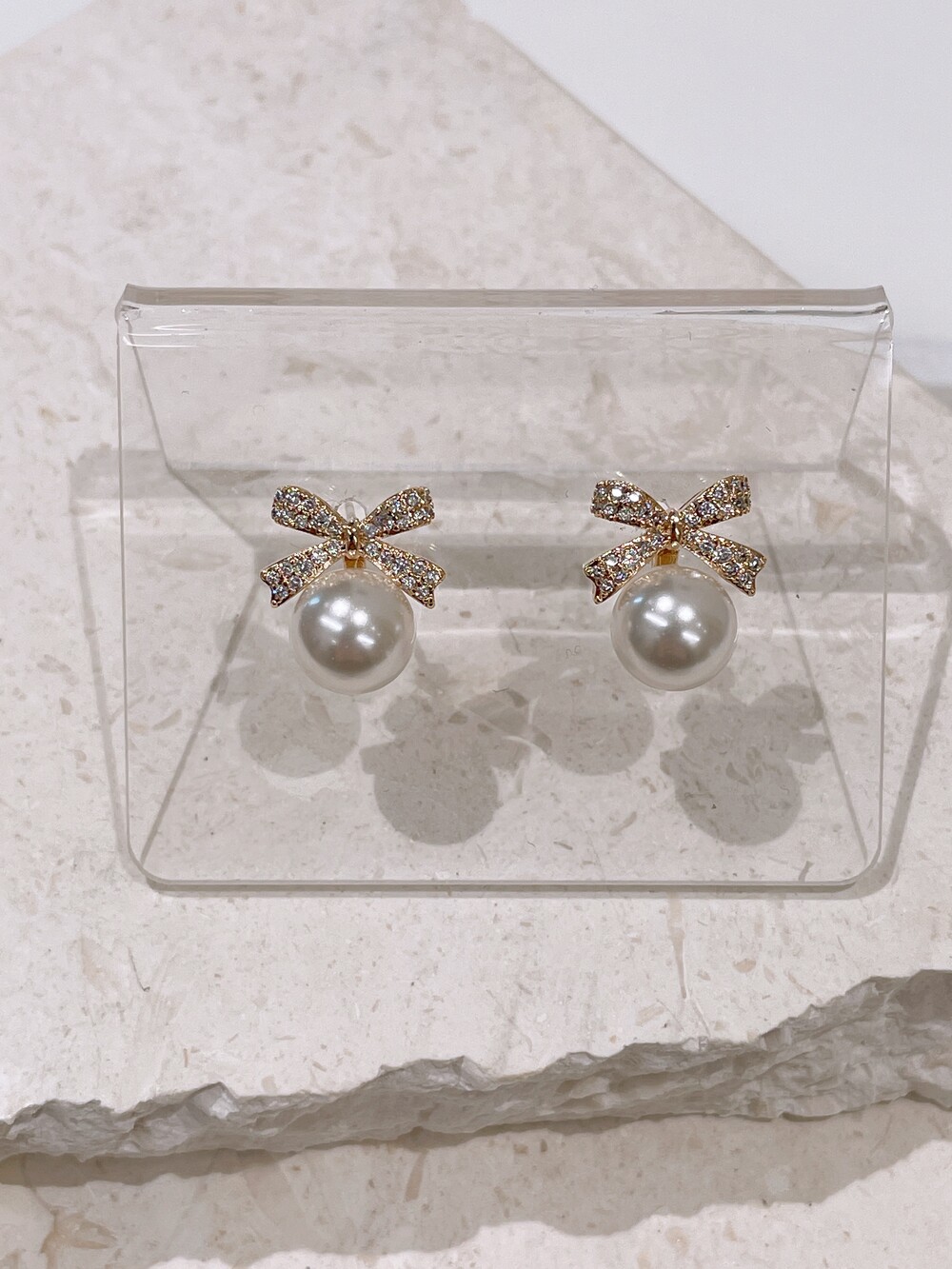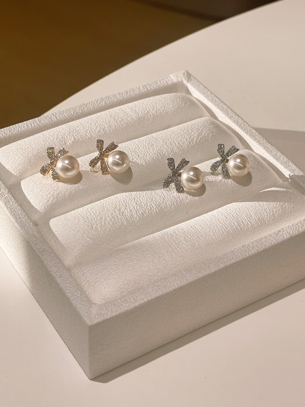 우아한 진주와 반짝이는 큐빅 리본의 조화로