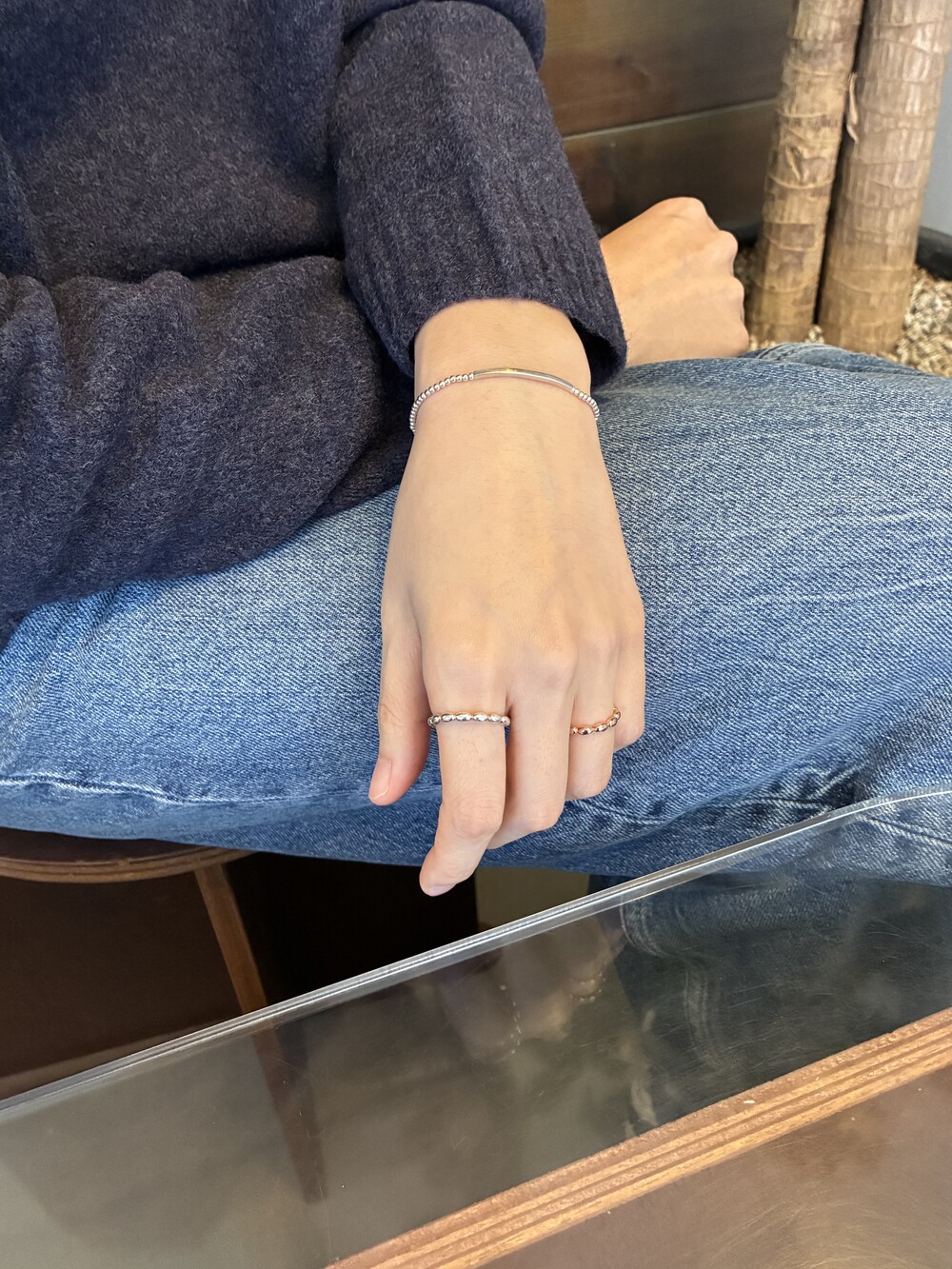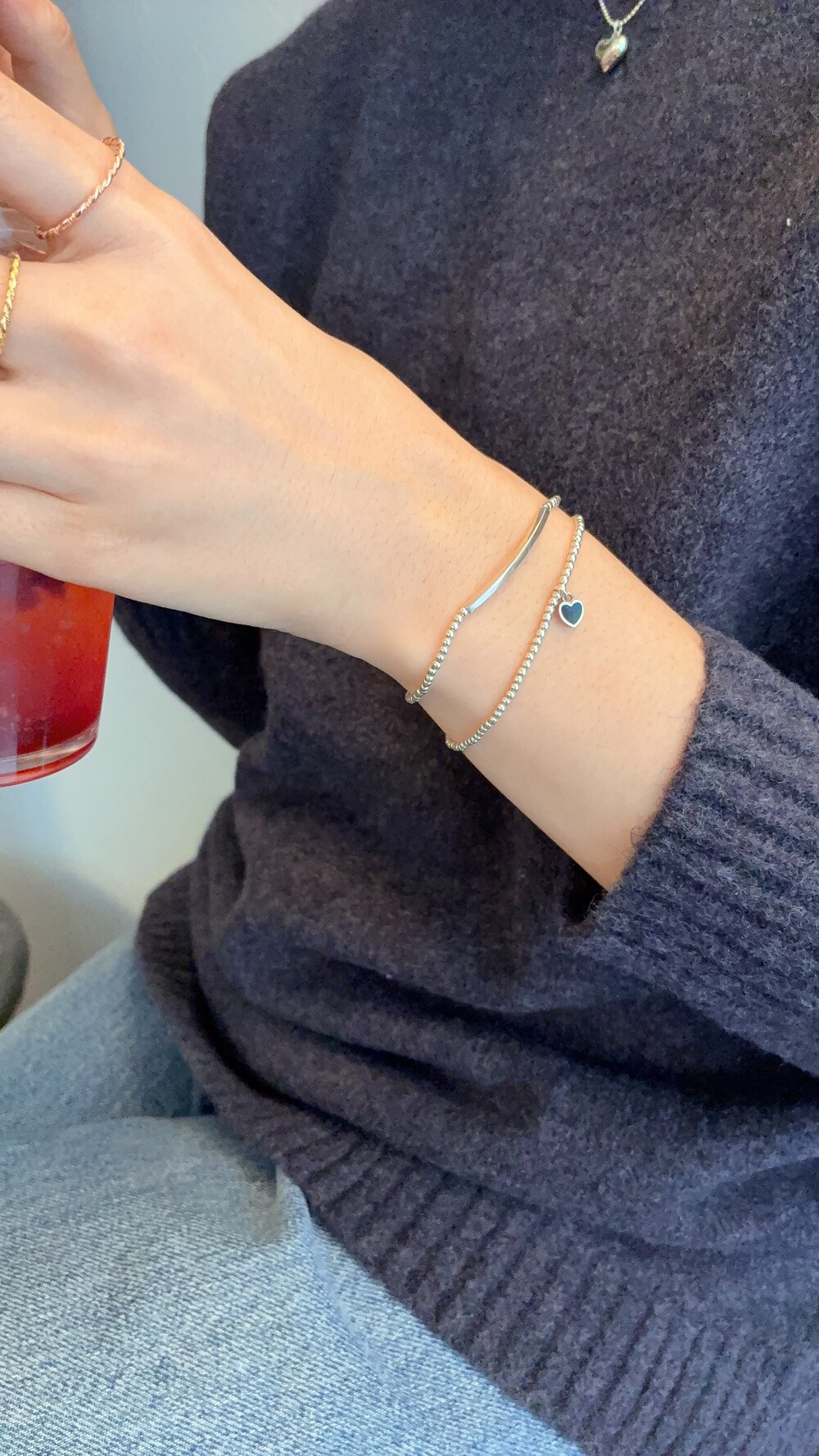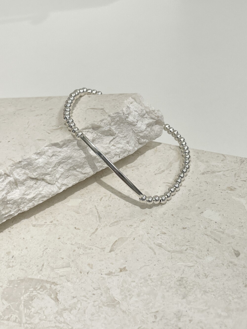 실버바와 실버볼이 깔끔하게 조합된 심플하고 미니멀한 팔찌
