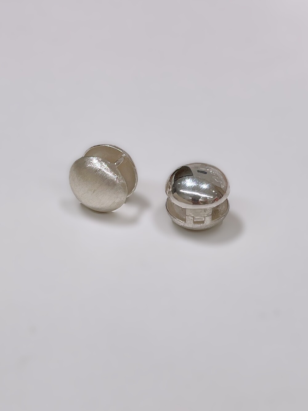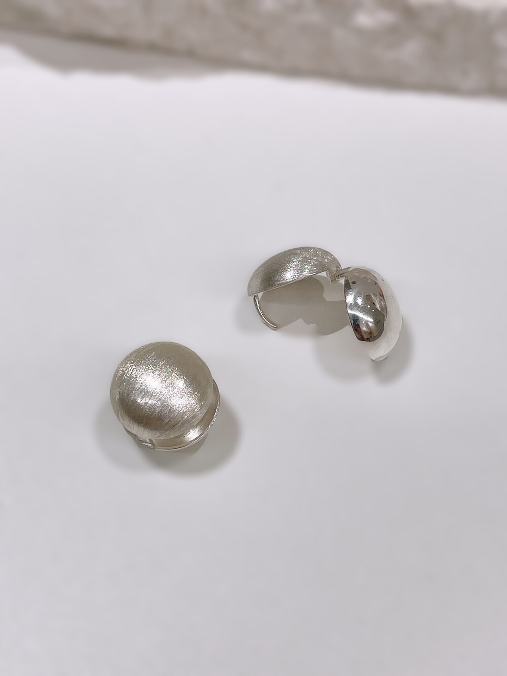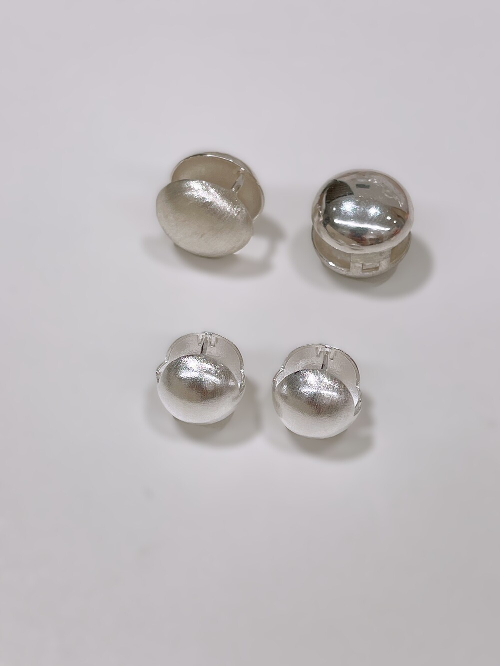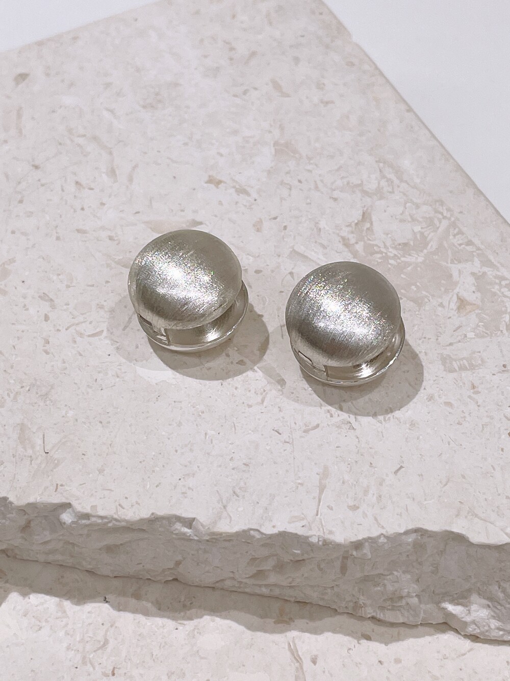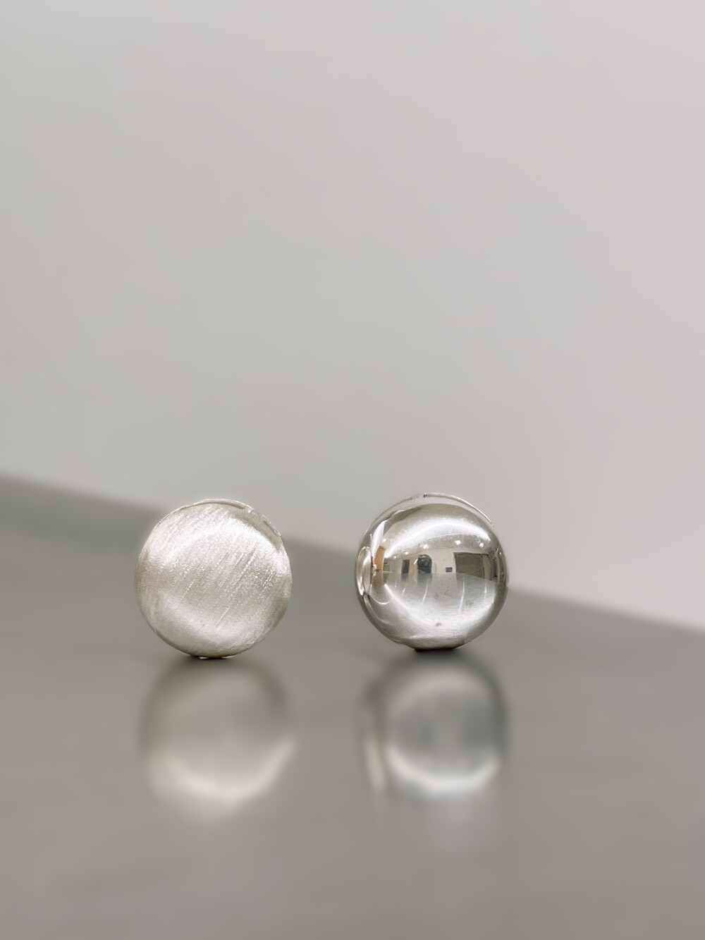 무광과 유광의 조화로운 감각을 더한 하프 볼 원터치 귀걸이.