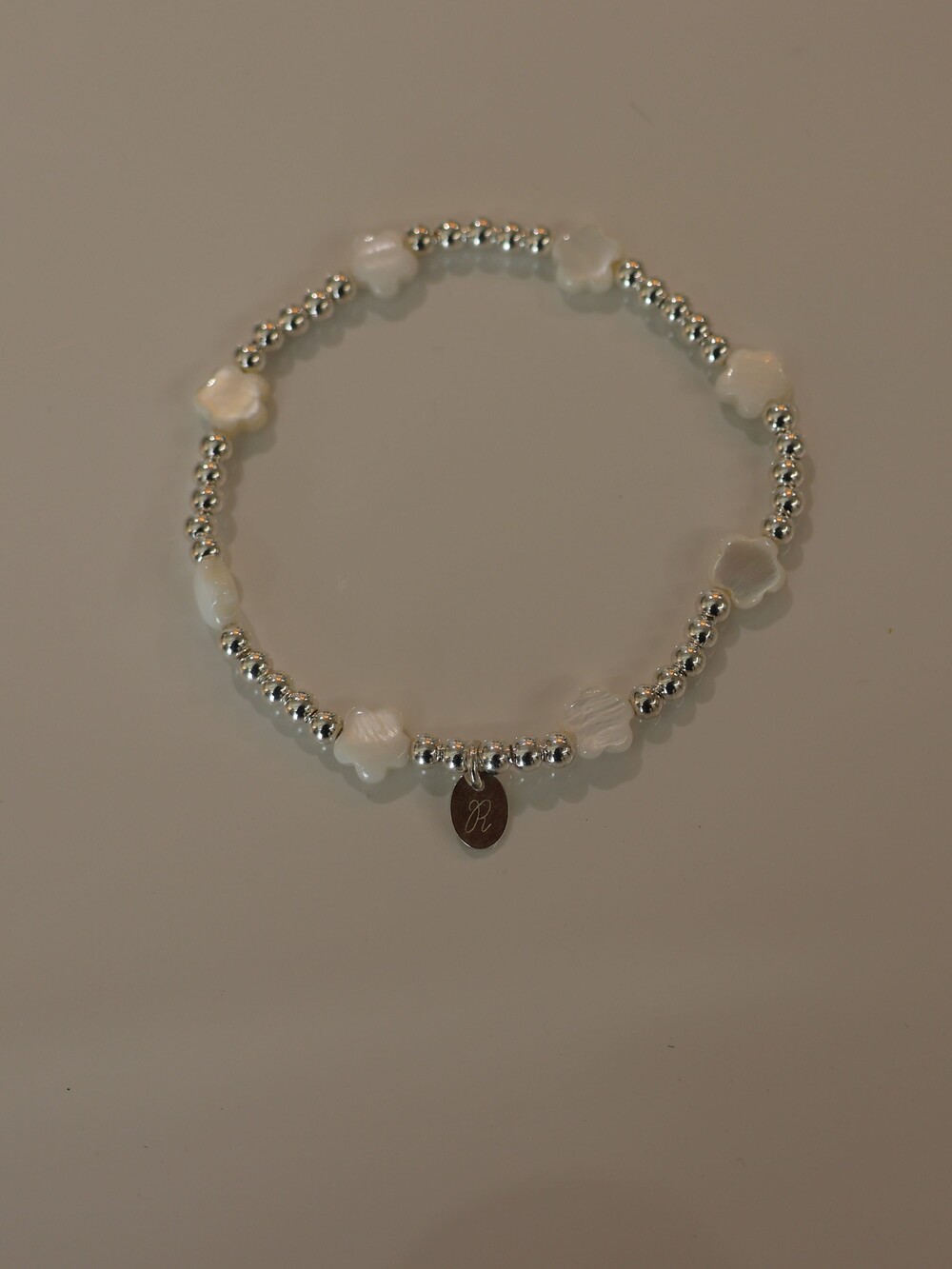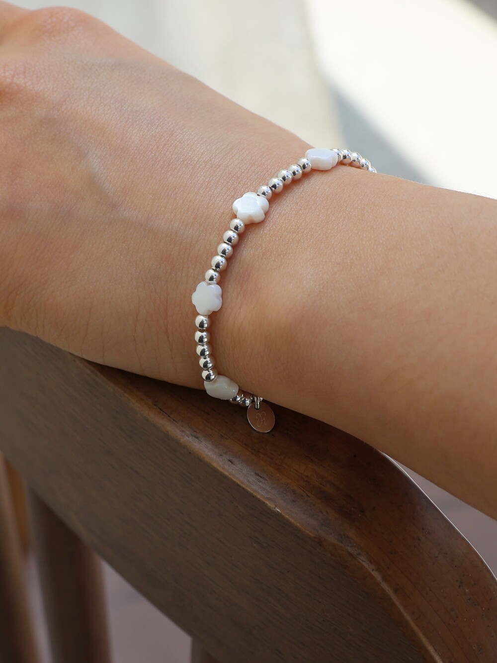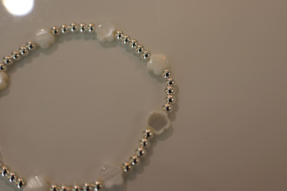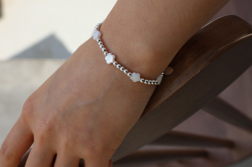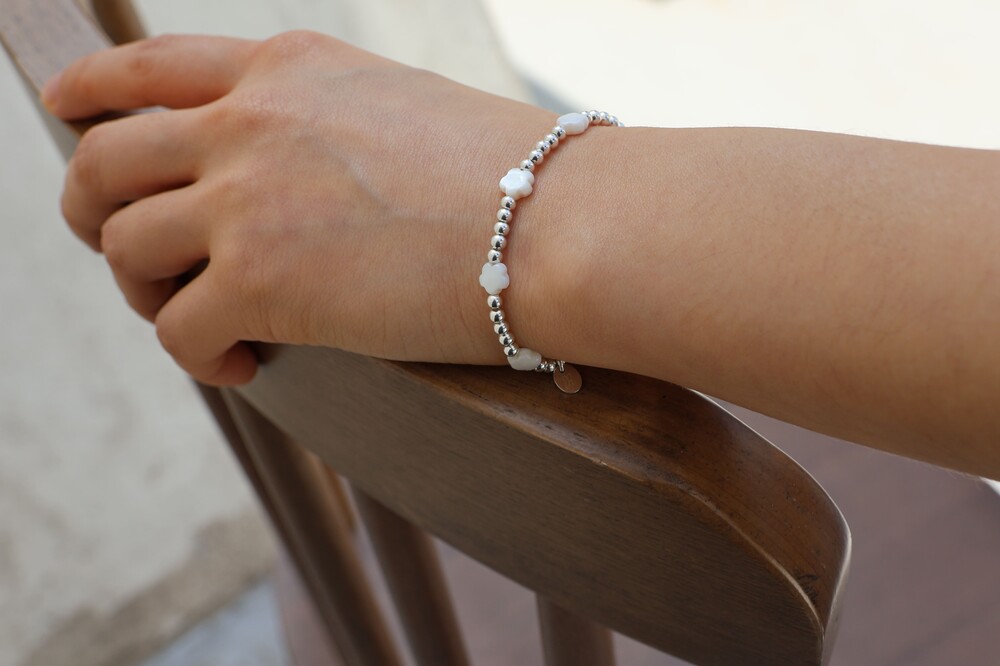 [ 천연소재 ] 꽃자개 실버볼 팔찌