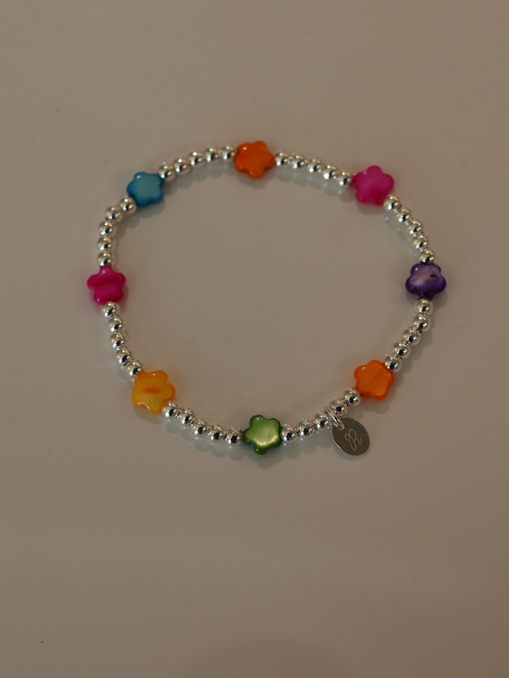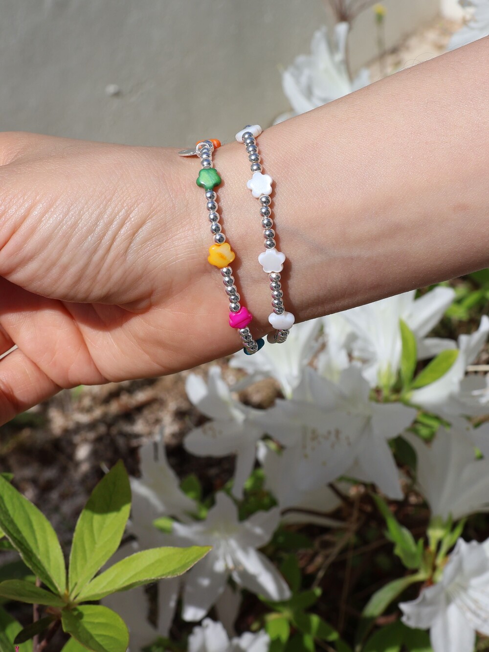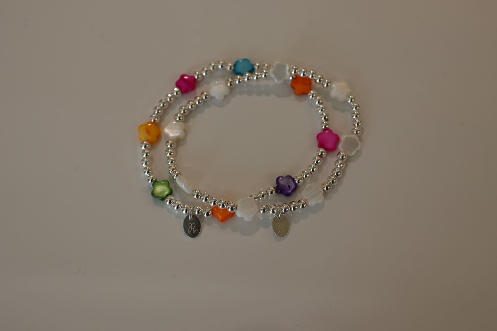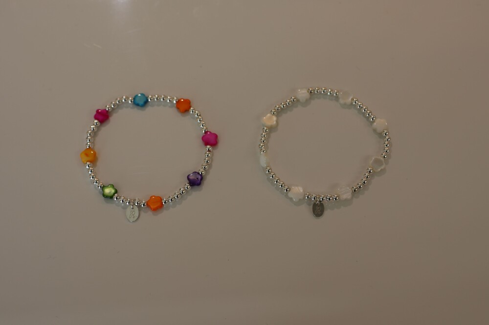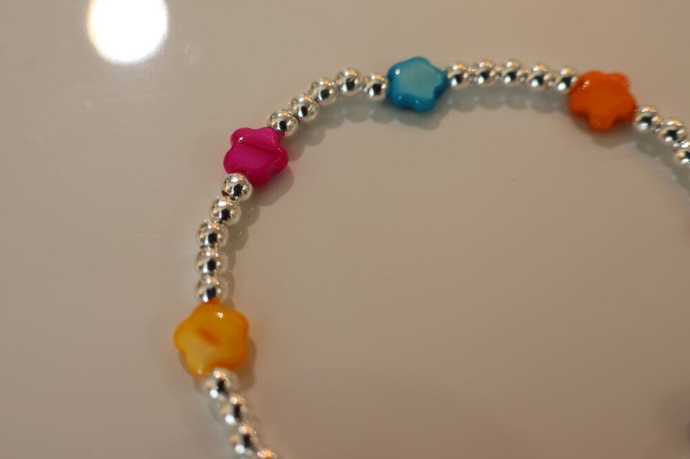 [ 천연소재 ] 꽃자개 실버볼 팔찌