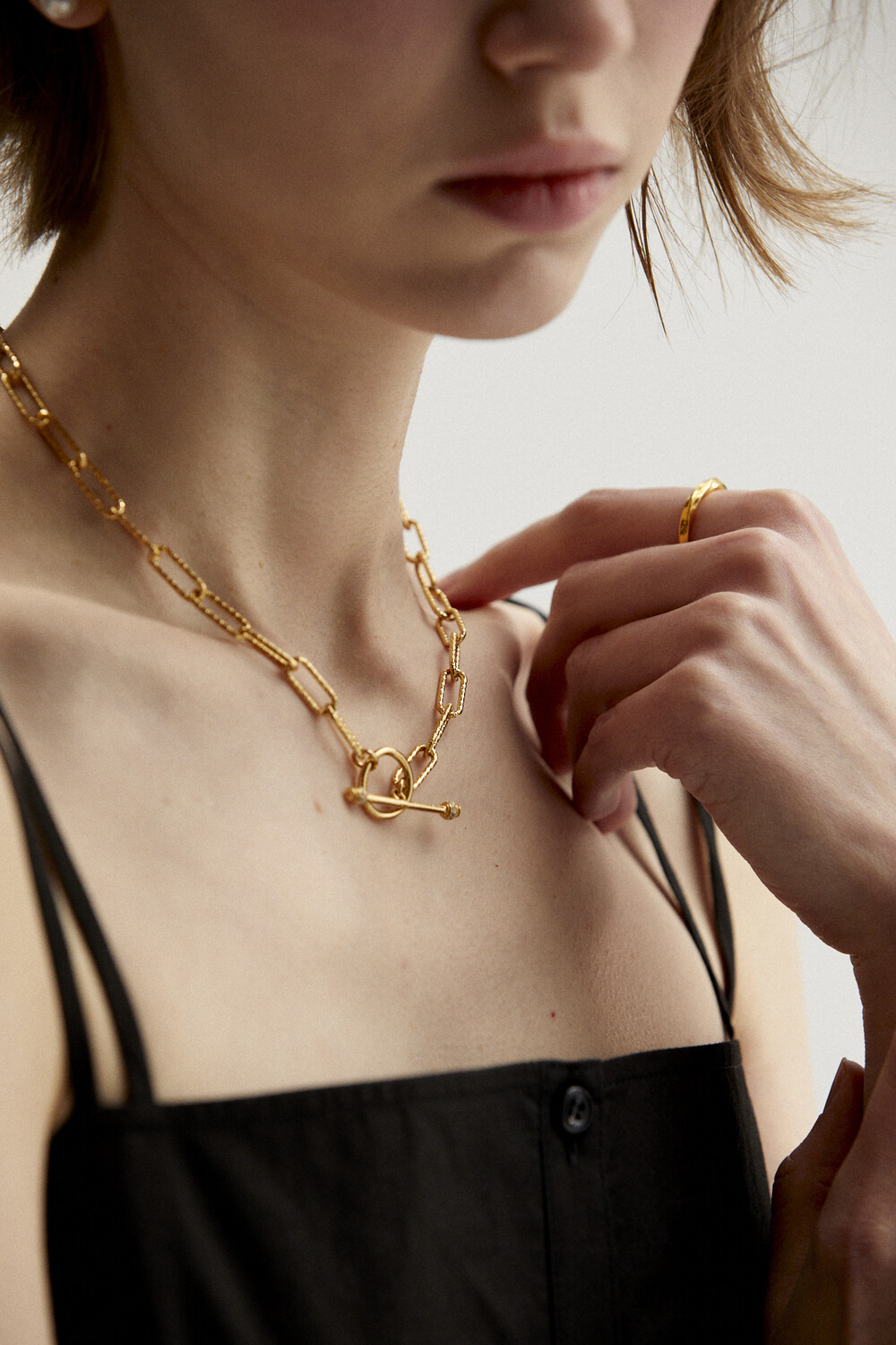 엣지 있는 세팅의 트위스트 프리 반지