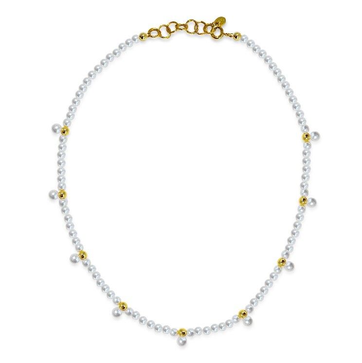 골드 포인트와 스왈 진주를 일정한 간격으로 배치해 은은한 광채와 세련된 리듬감을 살린 목걸이