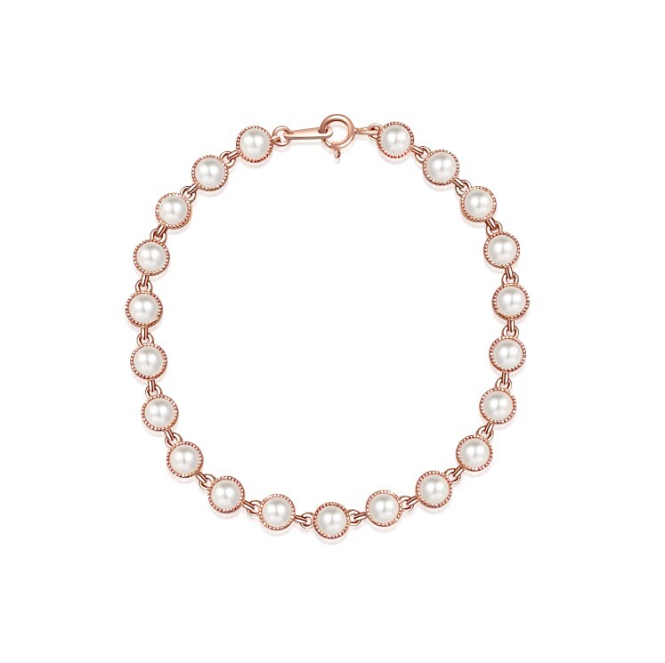 정교하게 연속 세팅된 스왈 진주 라인으로 제작된 팔찌