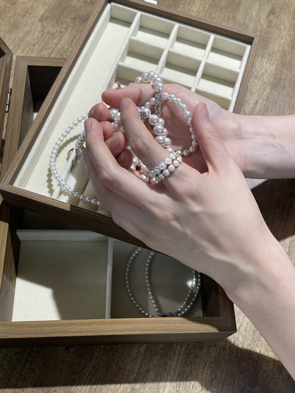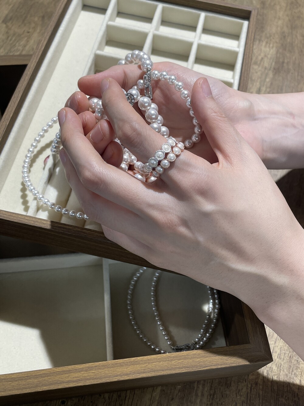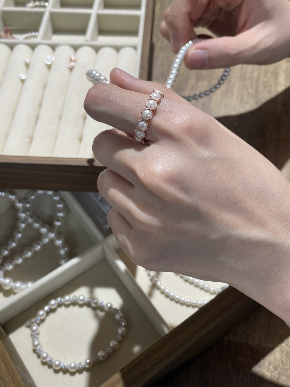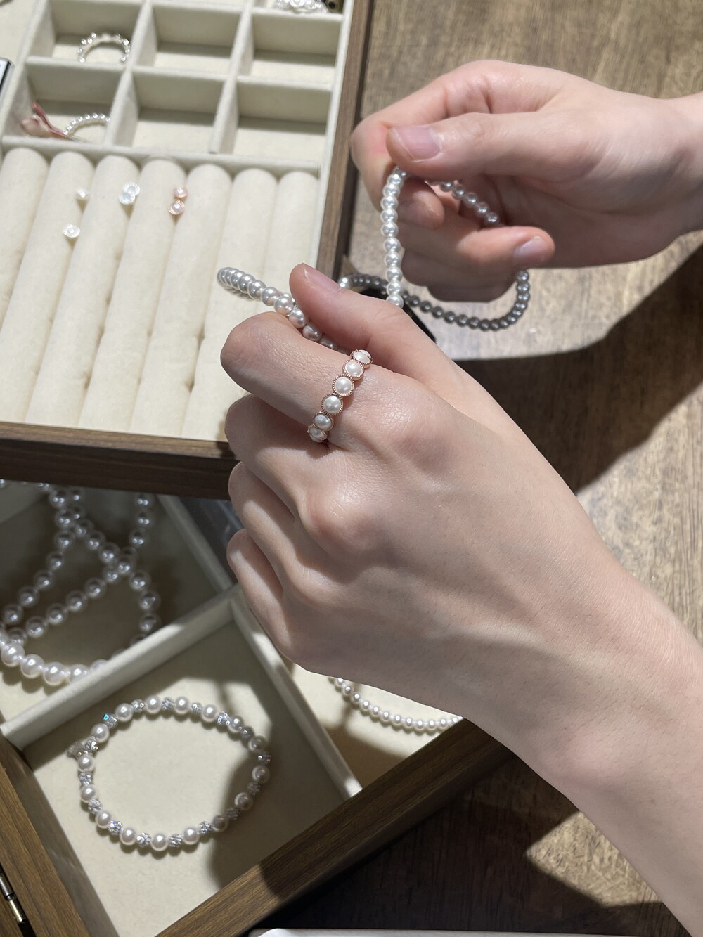 하프앤하프(스왈진주+더스트핑크)+로즈골드 링