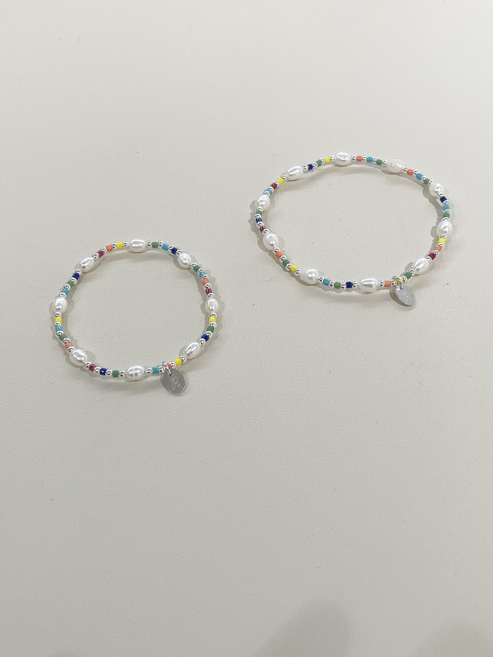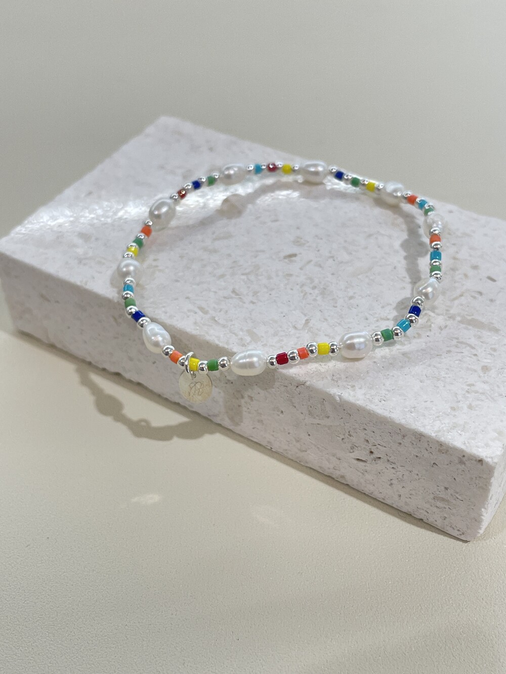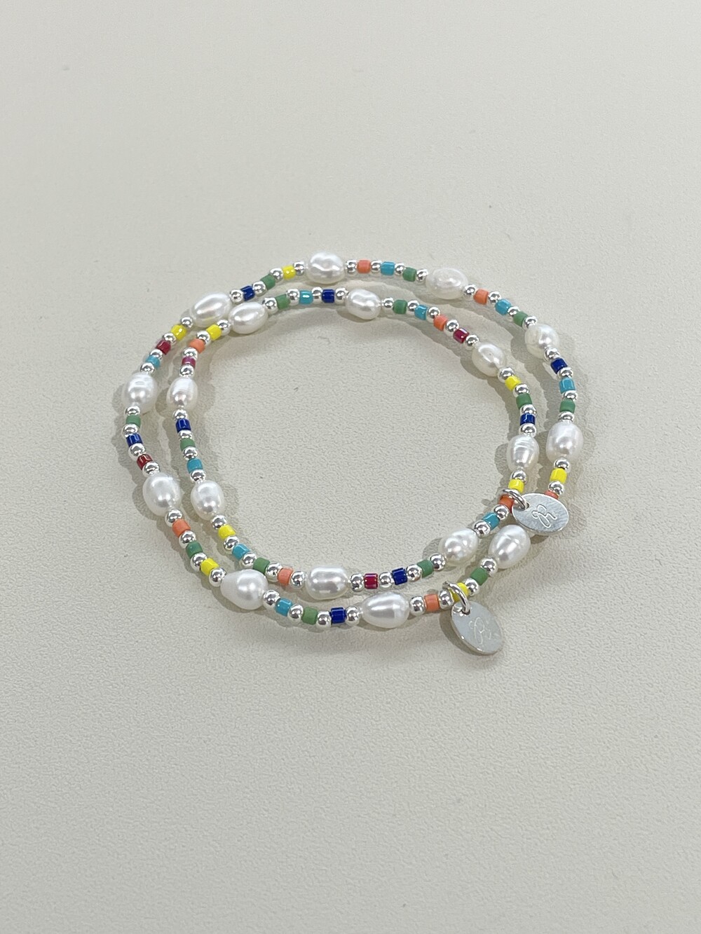 알록달록한 비즈와 영롱한 담수진주를 담은 우레탄 팔찌
