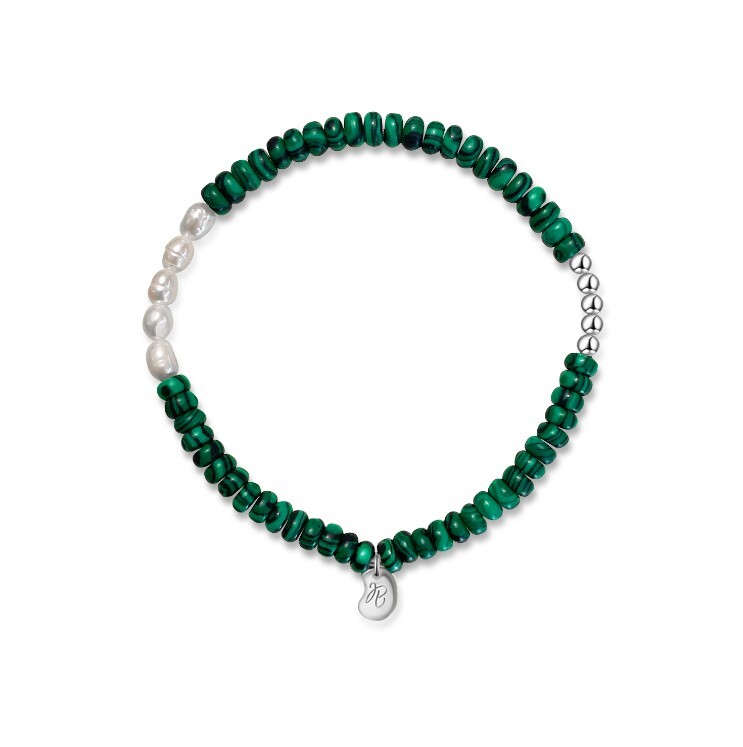 담수 진주와 그린 말라카이트가 어우러져 생동감있고 화사한 컬러 대비가 고급스러운 톤을 강조한 팔찌